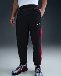 These nylon track pants pair the early-2000s energy of Nike’s iconic soccer kits with functional style. Their curvy, asymmetrical design lines with a water-repellent shell and mesh lining create a look that’s game ready in the stands and the streets. Product Details - Elastic waistband with drawcord - Zippered pockets - Elastic cuffs - Nike soccer shield logo on back - Body: 100% nylon. Lining: 100% polyester. - Machine wash - Imported - Shown: Black/Gym Red/Sail - Style: HQ3393-010 SIZE & FIT Model is wearing size M and is 6′1″185cm Standard fit: easy and traditional