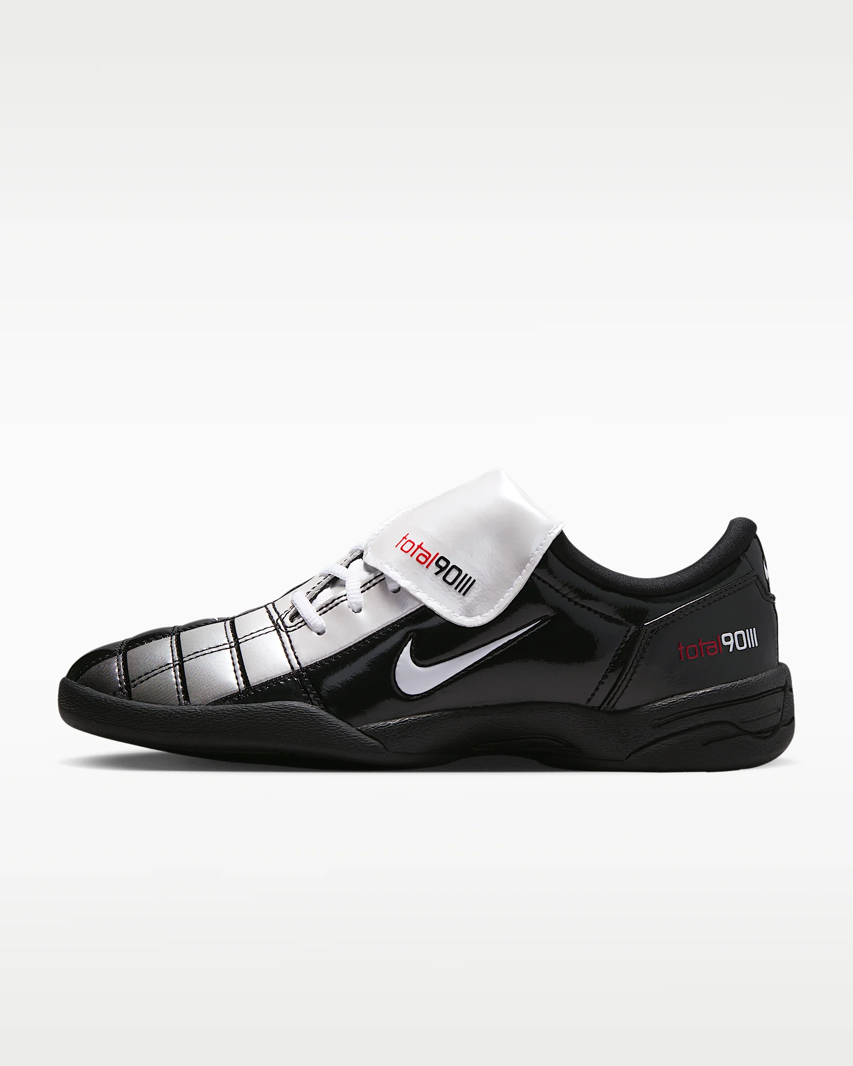 Authentic soccer style, now made for every day. The Total 90 is back, delivering Y2K nostalgia with its original quilted upper and asymmetrical lacing. We swapped the cleated sole for a flat rubber one ready for the streets, and brought back a heritage color palette ready for however you want to wear it. Benefits - Synthetic leather upper features Total 90 logos on each side. - Rubber outsole adds grip and durability. Product Details - Shown: Black/University Red/White - Style: IO2389-001