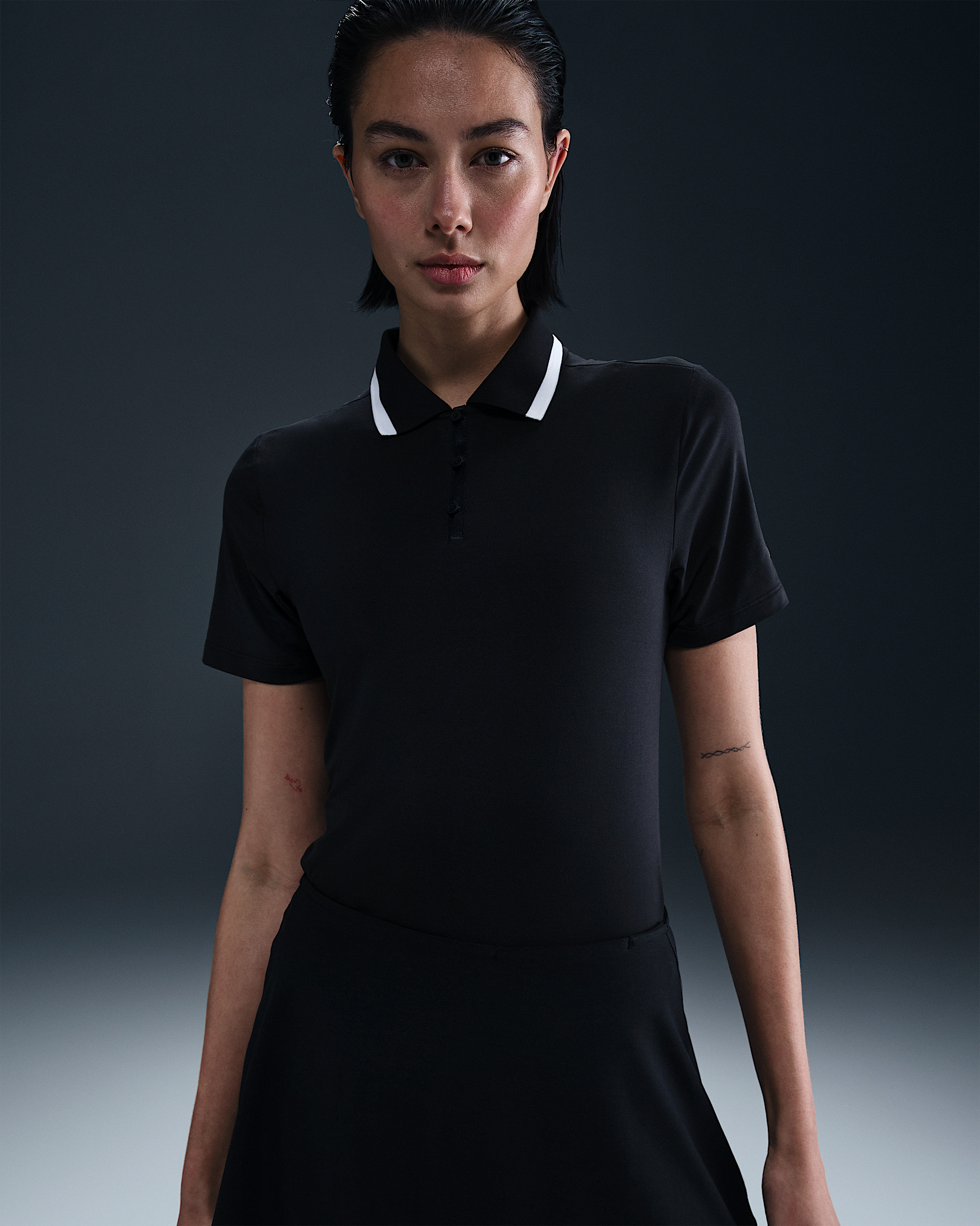 With a tailored fit and classic fold-over collar, this polo gives you a polished look. Lightweight and silky-smooth, the fabric is equipped with UV protection and dries quickly, helping you stay cool and comfortable. Benefits - Nike Dri-FIT technology moves sweat away from your skin for quicker evaporation, helping you stay dry and comfortable. - Optimal length makes top easy to tuck in to high-waisted and mid-rise bottoms. Product Details - Shine detail on placket - Bungee cord button loops - 88% polyester/12% spandex - Machine wash - Imported - This product provides UVA and UVB protection from the sun only in the areas covered by the garment. To protect exposed areas, the use of good quality sunscreen is recommended. - Shown: Black/White/White - Style: FZ6297-010 SIZE & FIT Model is wearing size S and is 5′10″178cm Sm fit: sleek and tailored