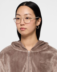 Made for everyone and designed for every day, the Nike Traveler Drift Blue Light frame combines premium quality with sleek metal frames for dependable durability. The classic round shape features adjustable nose pads, while the silicone-wrapped, color-block temples add a touch of Nike's signature sport detail. Featuring a premium coating that helps reduce blue light exposure for use at home, in the office, and during gaming sessions on your digital devices. Benefits - Helps combat digital eye strain with blue-light-reducing, anti-reflective (AR) coating. - Clear, premium lenses help reduce screen reflection. - 4-base flat lens provides slim profile - Slim profile balances style and comfort. Product Details - Scratch and smudge resistant - Lightweight, durable metal frame - UV protection against sun and environmental light - Lens Width 51mm - Bridge Width 20mm - Temple Length 145mm - Shown: Gold - Style: IB3678X-757