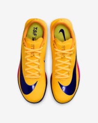 The Nike Triple Jump Elite 3 delivers lightweight containment through all phases of your triple jump. A thick midsole helps cushion your landing, while a full-length carbon fiber plate helps keep you grounded and stable when you run and jump. Product Details - World Athletics approved - Cushioned sockliner - Shown: Citron Pulse/Volt Ice/Vivid Purple/Indigo Burst - Style: HV6425-800