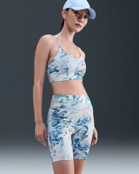 Susan Fang merges with Nike to elevate our sweat-concealing Universa biker shorts. Swirling with a dynamic print, the midweight, ultrasmooth fabric gives you squat-proof stretch through all your movements. Product Details - Hidden pocket in rear waistband - Body/Panels lining: 77% polyester/23% spandex - Machine wash - Imported - Shown: Blue Tint - Style: HV2371-423 SIZE & FIT Tight fit: snug and form-fitting High-Waisted: sits at or above your natural waist for more coverage