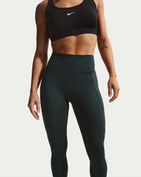 Don't let 'em see you sweat. We elevated the design of our Universa leggings to look smooth and help conceal sweat, thanks to a no-seam front and moisture-concealing technology. Their midweight, ultrasmooth fabric offers squat-proof stretch that helps lift and shape. Plus, an updated waistband resists rolling, so you can go all out with confidence. Product Details - Body: 77% polyester/23% spandex - Laser-cut hem - Reflective Swoosh logo on left hip - Not intended for use as Personal Protective Equipment (PPE) - Machine wash - Imported - Shown: Seaweed/Night Forest/Black Spruce - Style: HQ6810-390 SIZE & FIT Model is wearing size S and is 5′6″168cm Tight fit: snug and form-fitting Medium support: feels ke a snug hold to keep everything in place Fl length: hits below ankle High-Waisted: sits at or above your natural waist for more coverage