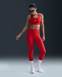 Don't let 'em see you sweat. We elevated the design of our Universa leggings to look smooth and help conceal sweat, thanks to a no-seam front and moisture-concealing technology. Their midweight, ultrasmooth fabric offers squat-proof stretch that helps lift and shape. Plus, an updated waistband resists rolling, so you can go all out with confidence. Product Details - 77% polyester/23% spandex - Laser-cut hem - Silicone Swoosh logo on left calf - Machine wash - Imported - Not intended for use as Personal Protective Equipment (PPE) - Shown: University Red/University Red/Varsity Red - Style: HQ6813-657 SIZE & FIT Model is wearing size S and is 5′9″175cm Tight fit: snug and form-fitting Medium support: feels ke a snug hold to keep everything in place 78 length: hits at ankle High-Waisted: sits at or above your natural waist for more coverage
