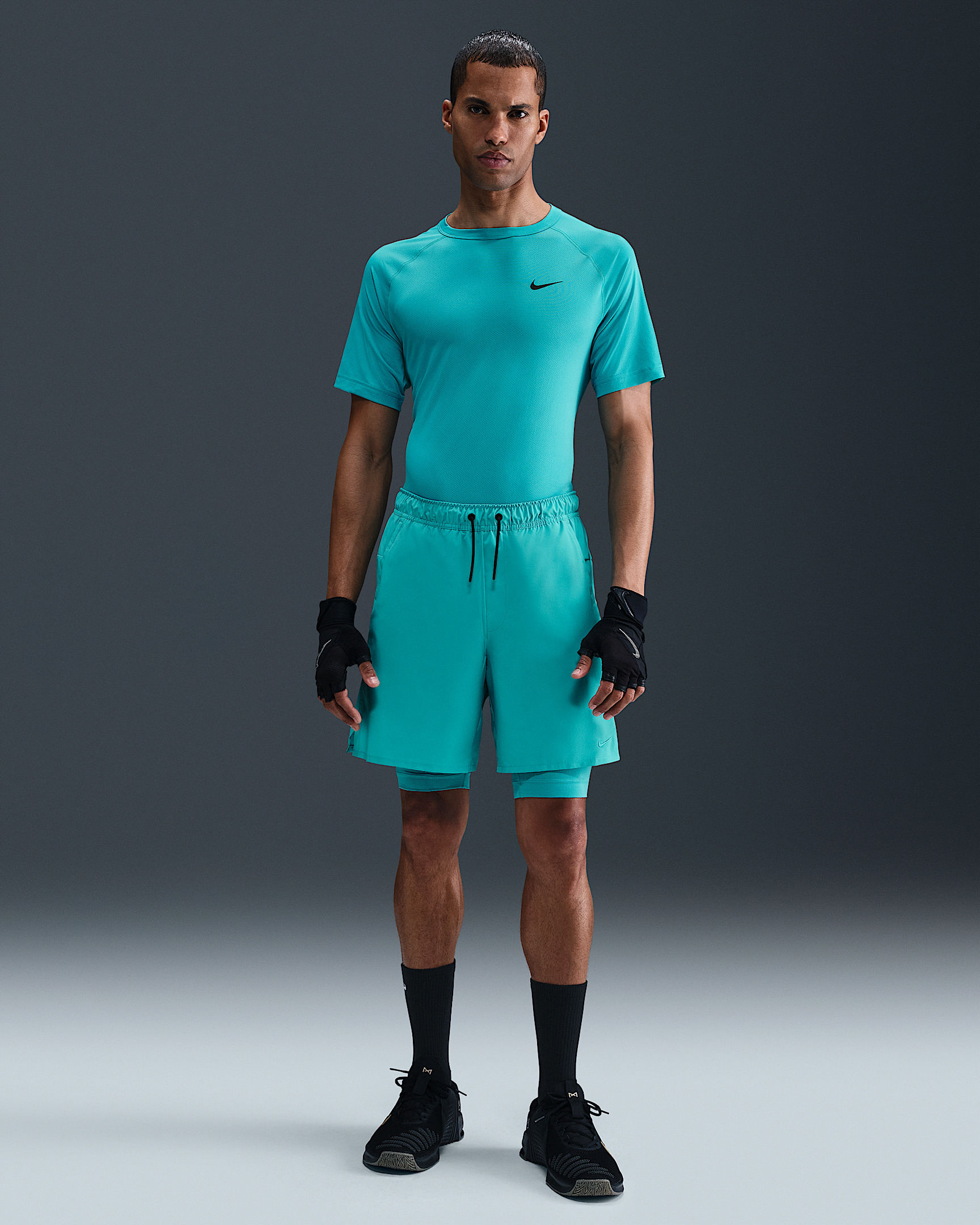 Designed for running, training and yoga, our sweat-wicking Unlimited Shorts were made to do it all. They're here for whatever your workout requires, with a smooth, stretchy outer layer that helps you stay free to move. A tight inner layer adds extra support during your routine. Plus, a hidden pocket lets you keep your phone close as you bring the heat to the gym or a run. More Benefits - Designed for Running, Yoga and Training - Length: 7" - Liner: 2-in-1 - Fabric: 4-way stretch woven - Storage: Side pockets, hidden back pocket and drop-in phone pocket - Waistband: Stay-in-place waistband with convertible interior/exterior drawcord Product Details - Interior key loop - Faux fly - Embroidered Swoosh - Body: 86% polyester/14% spandex. Panels: 89% polyester/11% spandex. Pocket Bags: 100% polyester. - Machine wash - Imported - Shown: Dusty Cactus/Dusty Cactus/Black/Dusty Cactus - Style: DV9334-345 SIZE & FIT Model is wearing size M and is 6′2″187cm Standard fit: easy and traditional