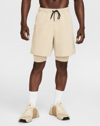Designed for running, training and yoga, our sweat-wicking Unlimited Shorts were made to do it all. They're here for whatever your workout requires, with a smooth, stretchy outer layer that helps you stay free to move. A tight inner layer adds extra support during your routine. Plus, a hidden pocket lets you keep your phone close as you bring the heat to the gym or a run. More Benefits - Designed for Running, Yoga and Training - Length: 7" - Liner: 2-in-1 - Fabric: 4-way stretch woven - Storage: Side pockets, hidden back pocket and drop-in phone pocket - Waistband: Stay-in-place waistband with convertible interior/exterior drawcord Product Details - Interior key loop - Faux fly - Embroidered Swoosh - Body: 86% polyester/14% spandex. Panels: 89% polyester/11% spandex. Pocket Bags: 100% polyester. - Machine wash - Imported - Shown: Desert Khaki/Desert Khaki/Black/Desert Khaki - Style: DV9334-251 SIZE & FIT Model is wearing size M and is 5′10″178cm Standard fit: easy and traditional