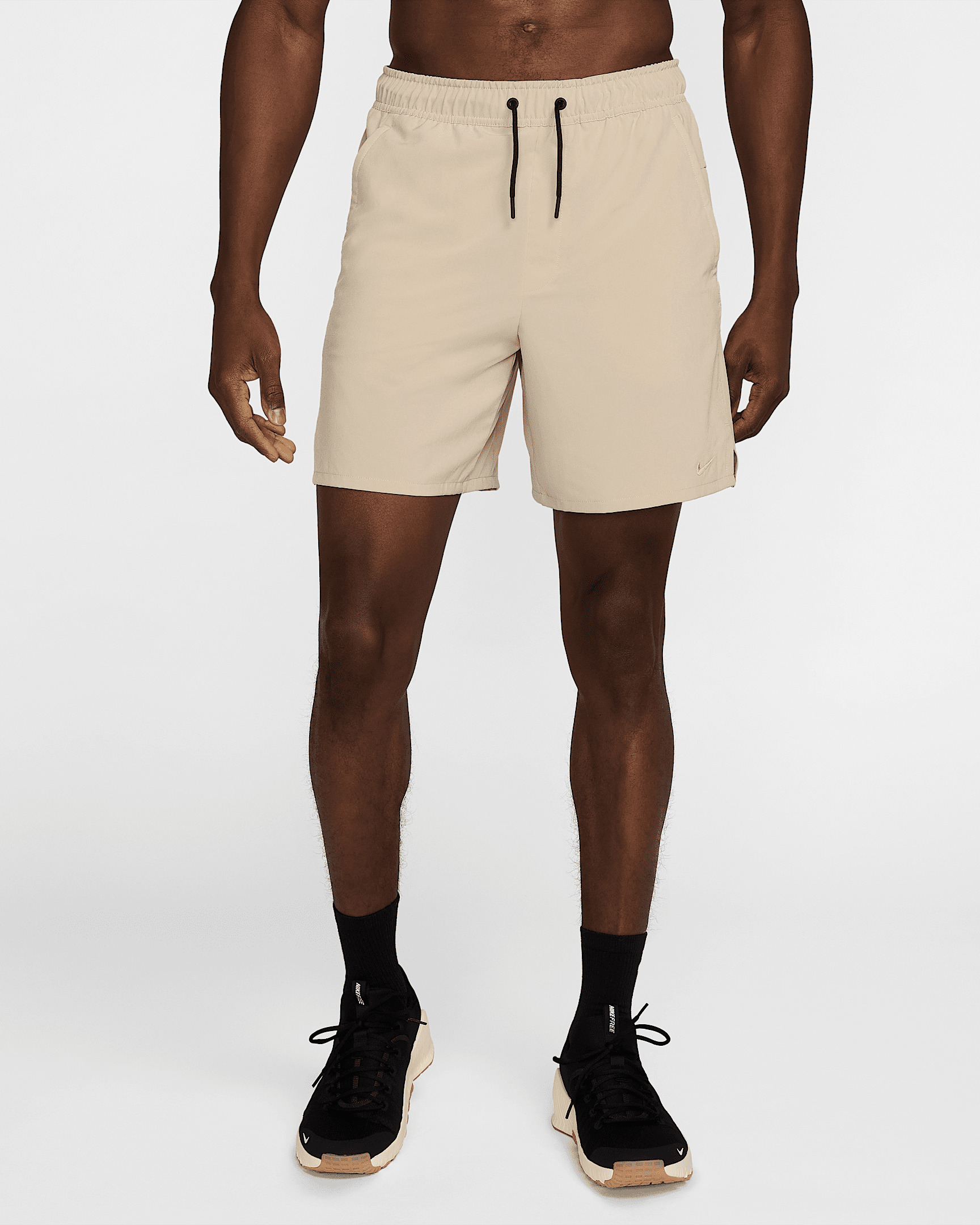 Built for running, training and yoga, our Unlimited collection helps keep you moving throughout the year, thanks to its premium materials and innovative features. These shorts are here for whatever your workout requires, with stretchy fabric that won't get in the way of movement. Plus, a hidden pocket lets you keep your phone close as you bring the heat to the gym or a run. More Benefits - Designed for Running, Yoga and Training - Length: 7" - Liner: Unlined - Fabric: 4-way stretch woven - Storage: Side pockets and hidden back pocket - Waistband: Stay-in-place waistband with convertible interior/exterior drawcord Product Details - Interior key loop - Faux fly - Embroidered Swoosh - Body: 86% polyester/14% spandex. Mesh: 100% polyester. - Machine wash - Imported - Shown: Desert Khaki/Black/Desert Khaki - Style: DV9340-251 SIZE & FIT Model is wearing size M and is 6′2″188cm Big & Tall model is wearing size 2XL and is 6'4"193cm Standard fit: easy and traditional Fits large; we recommend ordering a size down