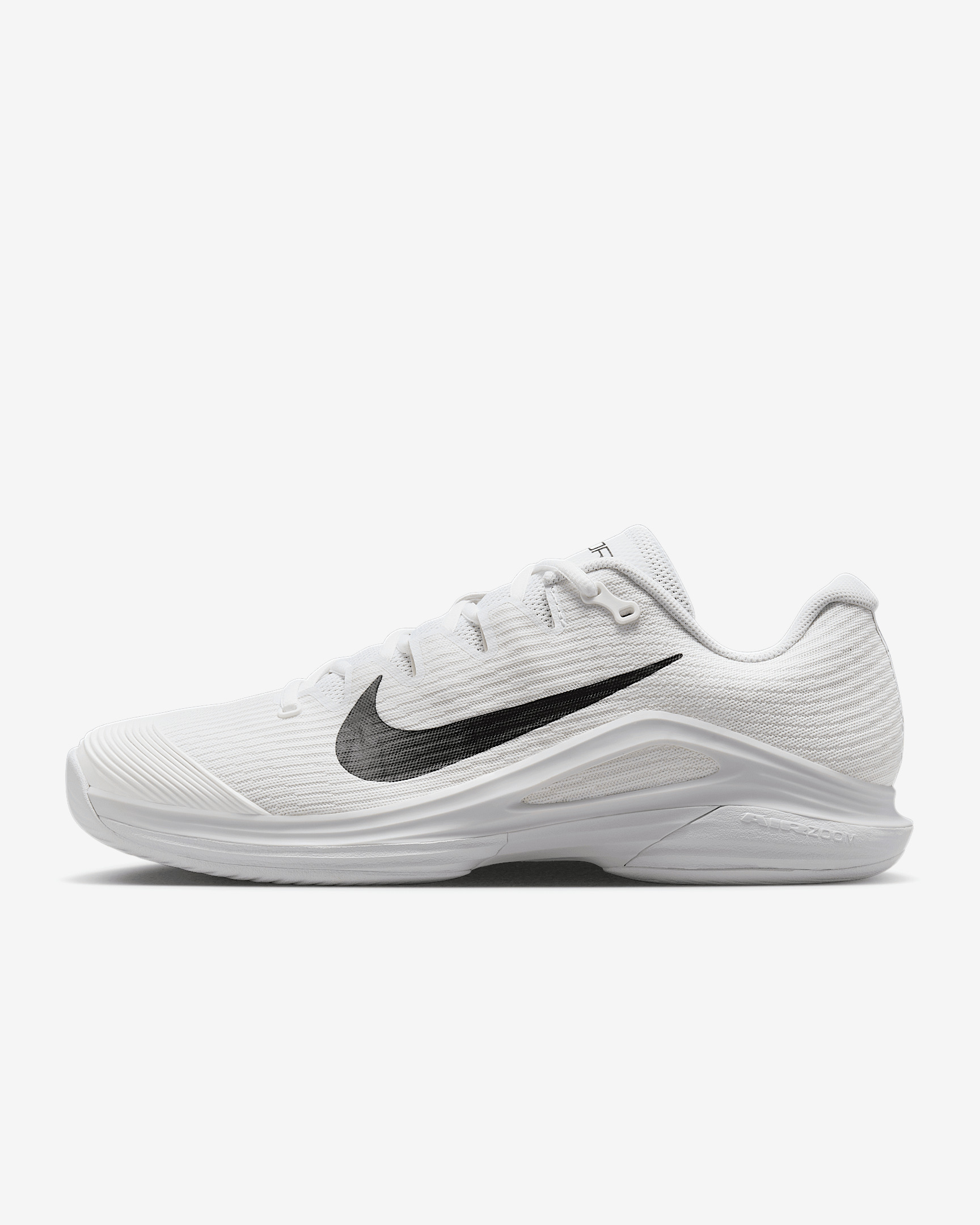 Get to every single ball with blistering speed in the Vapor 12. With a reworked upper and traction pattern, it's lighter and more responsive than the 11. And we brought back Air Zoom cushioning, so you can always be on the attack. More Benefits - Full midfoot fit band allows you to pull the laces tighter to enhance the fit and enable faster cuts. - Midsole foam in between the plastic and rubber, which wasn’t on the Vapor 11, helps keep you light on your feet. Product Details - Designed for wear on hard court surfaces - Cushioned insole - Shown: White/Summit White/Black - Style: FV5552-101