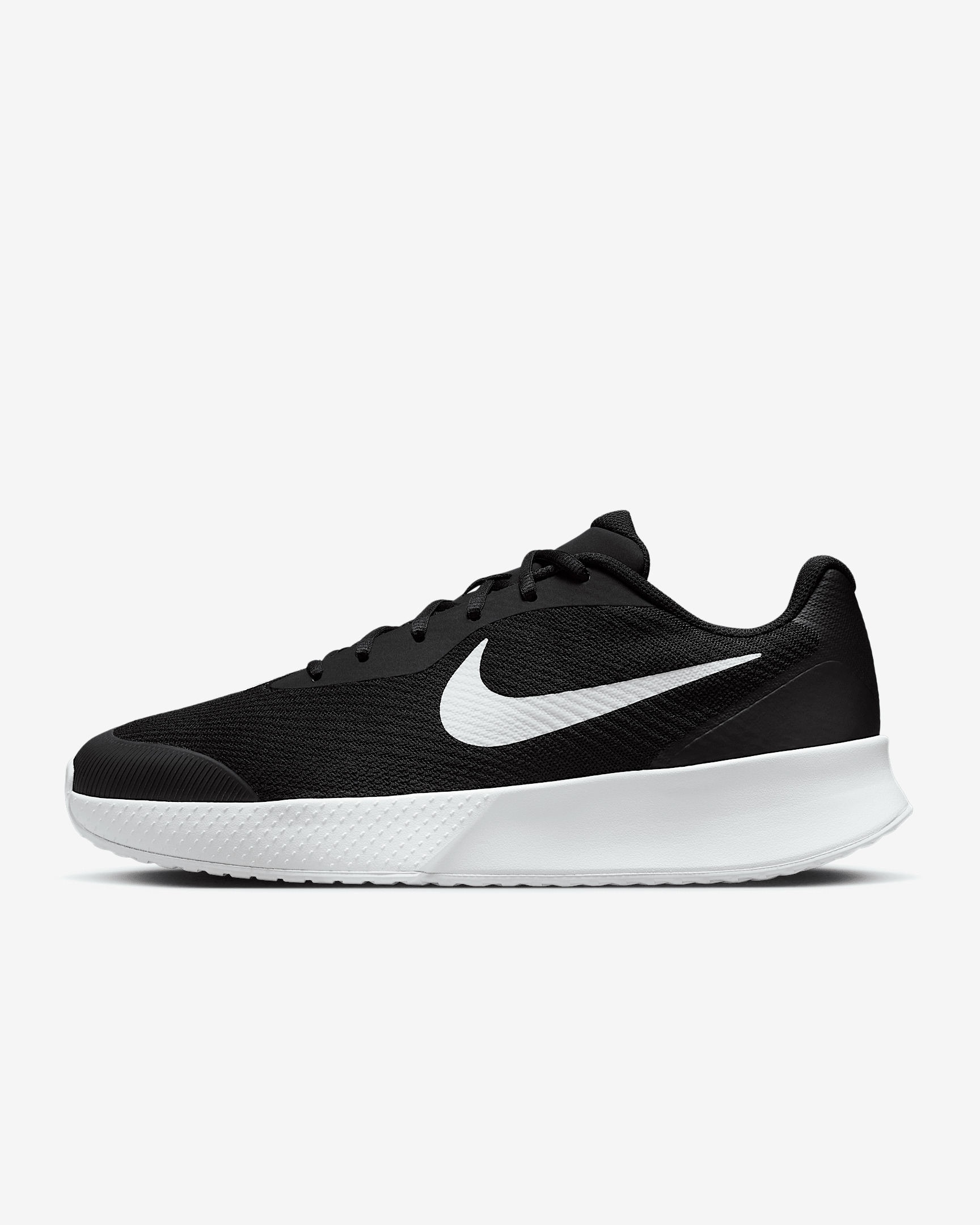 The Vapor Lite just got lighter. With a new rubber compound on the outsole, the Vapor Lite 3 helps you to decelerate, plant and sprint back into position without feeling like you’re rounding off your cuts. Benefits - Rubber toe tip is made of the same new compound to enhance durability in a high-wear area. - Engineered mesh—tougher and more durable than regular mesh—provides comfort and breathability. Product Details - Designed for wear on hard court surfaces - Soft, supportive foam midsole - Shown: Black/White - Style: FZ2155-001