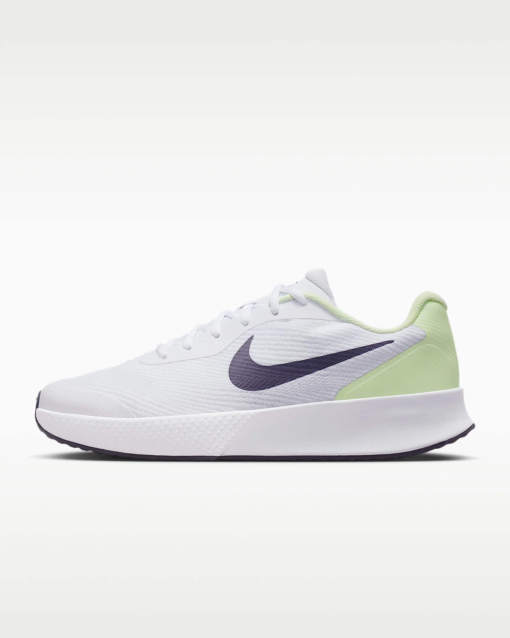The Vapor Lite just got lighter. With a new rubber compound on the outsole, the Vapor Lite 3 helps you to decelerate, plant and sprint back into position without feeling like you’re rounding off your cuts. Benefits - Rubber toe tip is made of the same new compound to enhance durability in a high-wear area. - Engineered mesh—tougher and more durable than regular mesh—provides comfort and breathability. Product Details - Designed for wear on hard court surfaces - Soft, supportive foam midsole - Shown: White/Volt Tint/Dark Raisin - Style: FZ2155-108