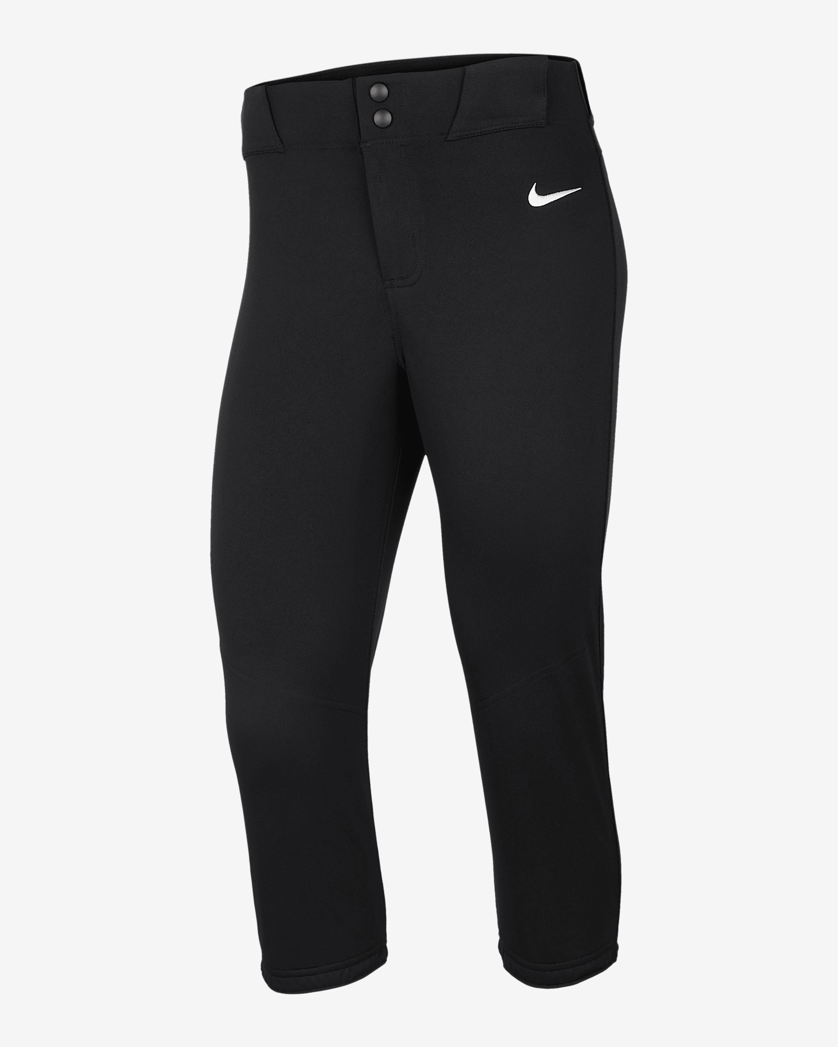 Focus on the game in these fitted softball pants. Made with breathable knit fabric, they have grip around the waistband to help hold them in place during all-out play. Product Details - Belt loops - Front zipper - Snap-button closure - Back pockets - Swoosh logo at hip - 100% polyester - Machine wash - Imported - Shown: Black/White - Style: HF7745-010 SIZE & FIT Tight fit: snug and form-fitting Fl length: hits below ankle