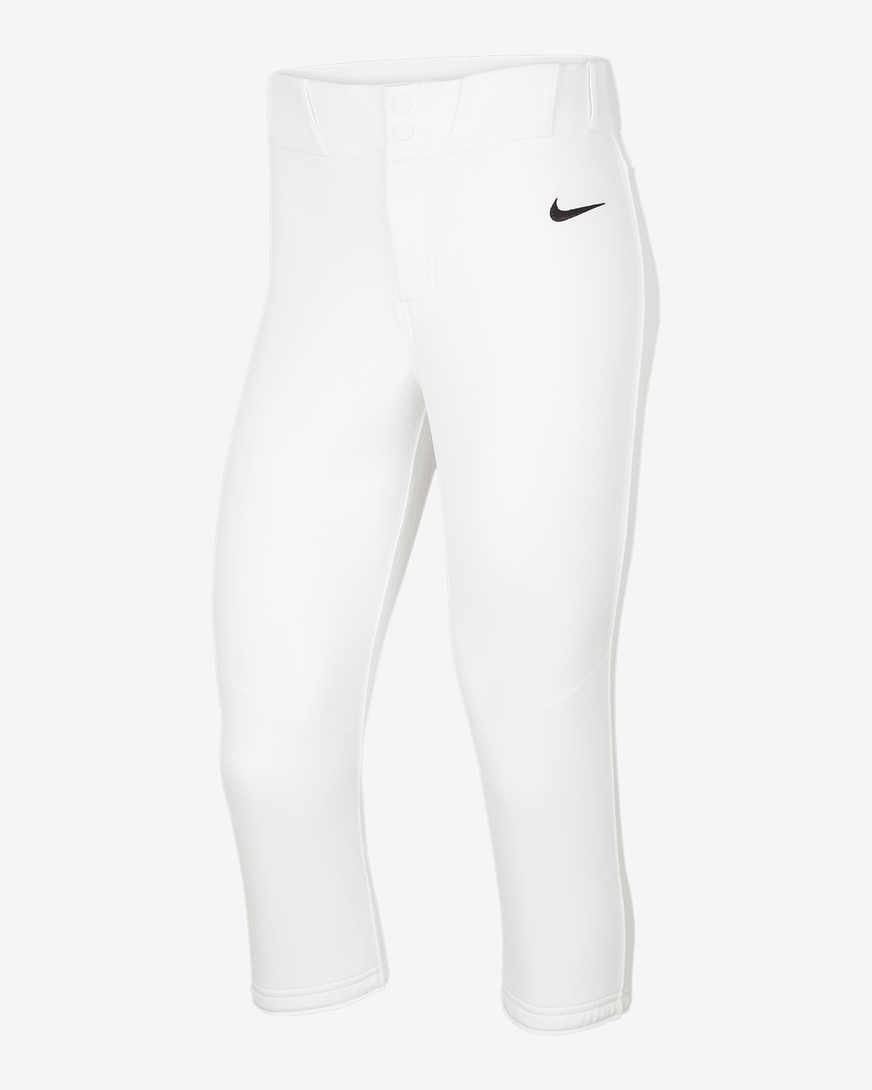 Focus on the game in these fitted softball pants. Made with breathable knit fabric, they have grip around the waistband to help hold them in place during all-out play. Product Details - Belt loops - Front zipper - Snap-button closure - Back pockets - Swoosh logo at hip - 100% polyester - Machine wash - Imported - Shown: White/Black - Style: HF7745-100 SIZE & FIT Tight fit: snug and form-fitting Fl length: hits below ankle