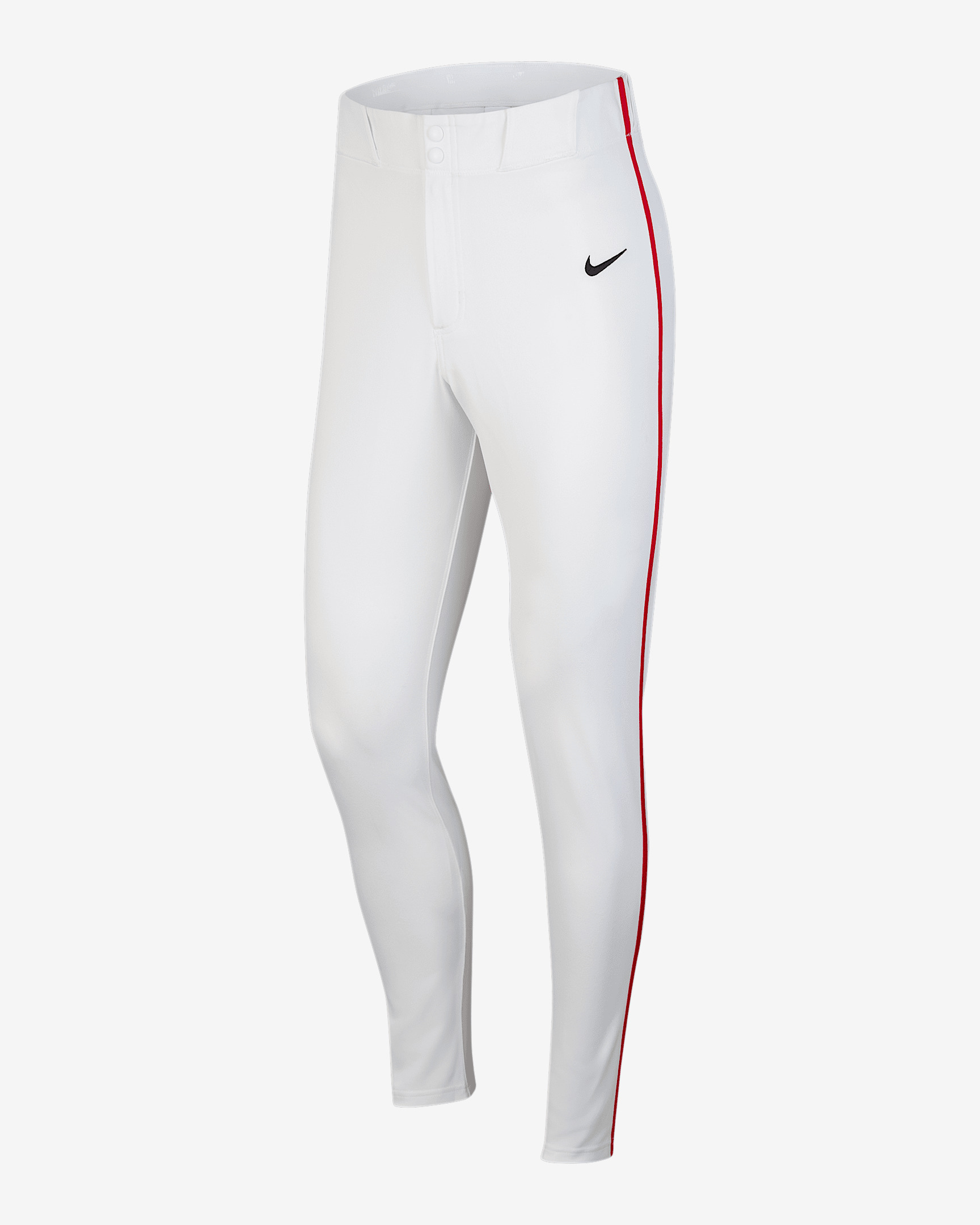 The Nike Vapor Select Pants help prepare for the heat of competition with breathable knit fabric and a slim fit. Grip inside the waist helps keep the uniform in place during all-out play. Product Details - Belt loops - Elastic waistband - Front zipper - Back pockets - Snap-button closure - 100% polyester - Machine wash - Imported - Shown: White/University Red/Black - Style: FZ1373-102 SIZE & FIT Sm fit: sleek and tailored