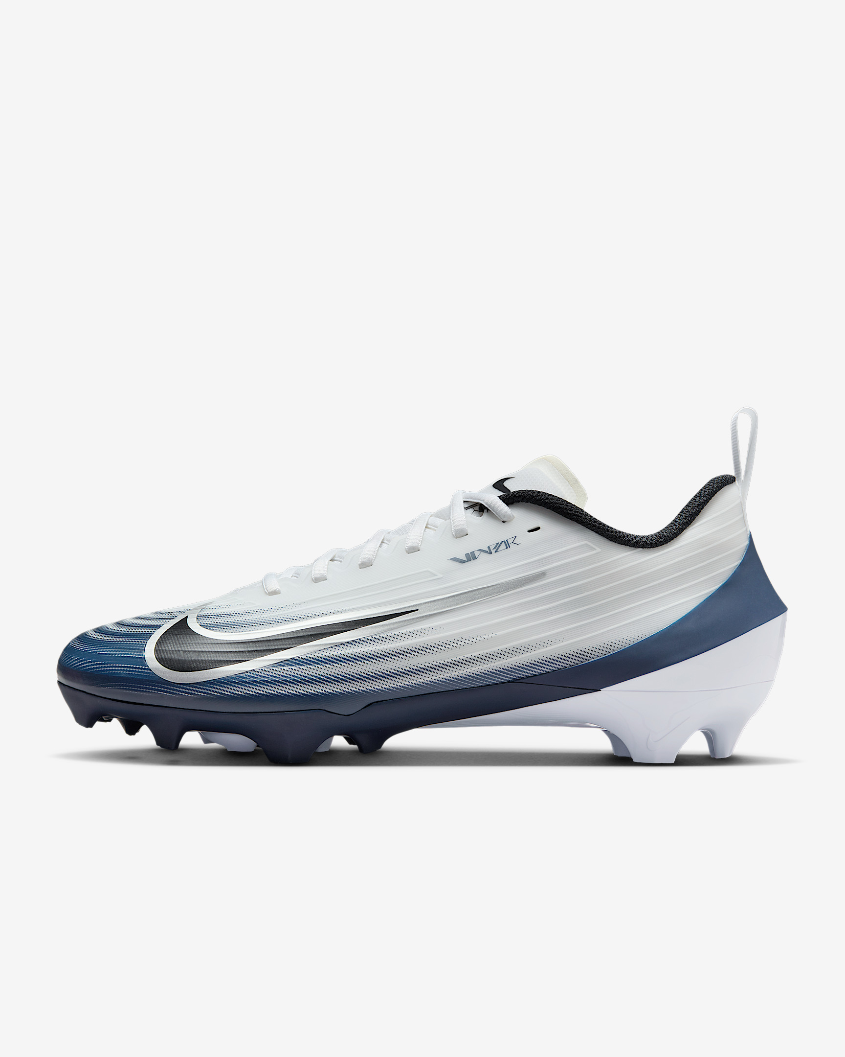 The Vapor Speed 3 is made to help you get the most out of your wheels. Its new Vapor Speed plate works with an updated stud configuration to help you plant and cut with velocity and pace. Benefits - Mesh and synthetic skins provide lightweight support and durability. - New stud configuration ensures optimal multidirectional traction. Product Details - Shown: White/Midnight Navy/Metallic Silver/Black - Style: HM8849-103