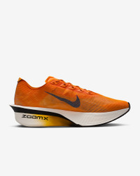 The Vaporfly 4 is a lean, mean, mile-eating machine. We trimmed weight in the midsole, outsole and upper from the Vaporfly 3 without sacrificing performance. The result is a lighter, more propulsive all-around racing shoe that’s trusted from the mile to the marathon. More Benefits - Lighter upper, midsole, outsole - Higher plate angle - Lower heel-to-toe drop Product Details - Weight: Approx. 190g/6.7oz (Men's US 10) - Heel-to-toe drop: 6mm - Shown: Orange Peel/Black/Sail/Team Royal - Style: IO7549-833