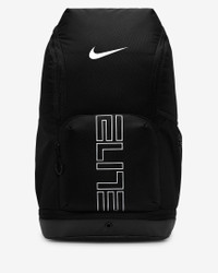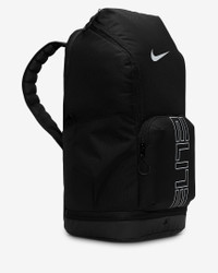 The Varsity Elite backpack holds everything you need to hoop. A large main compartment fits up to a full-size basketball. Exterior front pocket allows quick access to small items and a bottom pocket keeps sweaty clothes and dirty shoes separate. Benefits - Shoulder straps feature Air Max technology for enhanced comfort. - Top zippered pocket is plush lined to protect tech and valuables. - Internal laptop compartment fits up to a 16” laptop. Product Details - 12" W x 19" H x 9" D - Expandable side pocket - 100% polyester - Spot clean - Imported - Shown: Black/Black/Metallic Silver - Style: HM9965-010