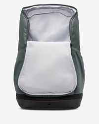 The Varsity Elite backpack holds everything you need to hoop. A large main compartment fits up to a full-size basketball. Exterior front pocket allows quick access to small items and a bottom pocket keeps sweaty clothes and dirty shoes separate. Benefits - Shoulder straps feature Air Max technology for enhanced comfort. - Top zippered pocket is plush lined to protect tech and valuables. - Internal laptop compartment fits up to a 16” laptop. Product Details - 12" W x 19" H x 9" D - Expandable side pocket - 100% polyester - Spot clean - Imported - Shown: Iron Grey/Black/Black - Style: HM9965-068