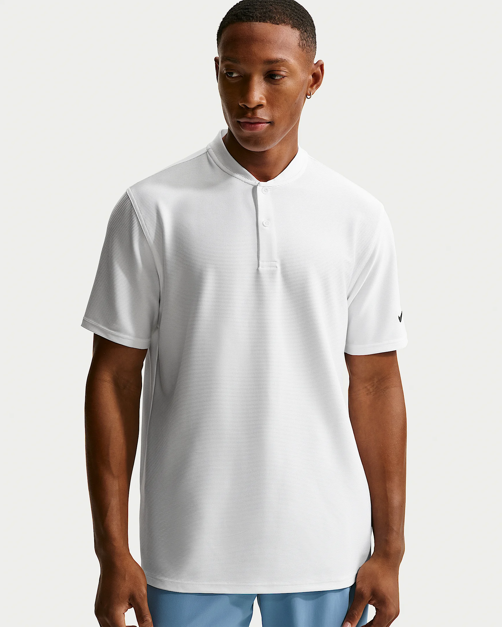 Lightweight and breathable, this sweat-wicking polo helps keep you dry on and off the course. Some stretch in the ribbed fabric allows you to move with ease through your biggest rounds of the year. Benefits - Smooth four-way stretchy fabric allows you to move through your swing without restriction. - Fabric has a subtle sheen and drape for a polished look on and off the course. - Nike Dri-FIT technology moves sweat away from your skin for quicker evaporation, helping you stay dry and comfortable. Product Details - 90% polyester/10% spandex - Stretchy knit fabric - Embroidered Swoosh logo - 2-button placket - Straight bottom hem - Machine wash - Imported - Shown: White/Black - Style: IQ6698-100 SIZE & FIT Model is wearing size M and is 5′11″179cm Standard fit: easy and traditional