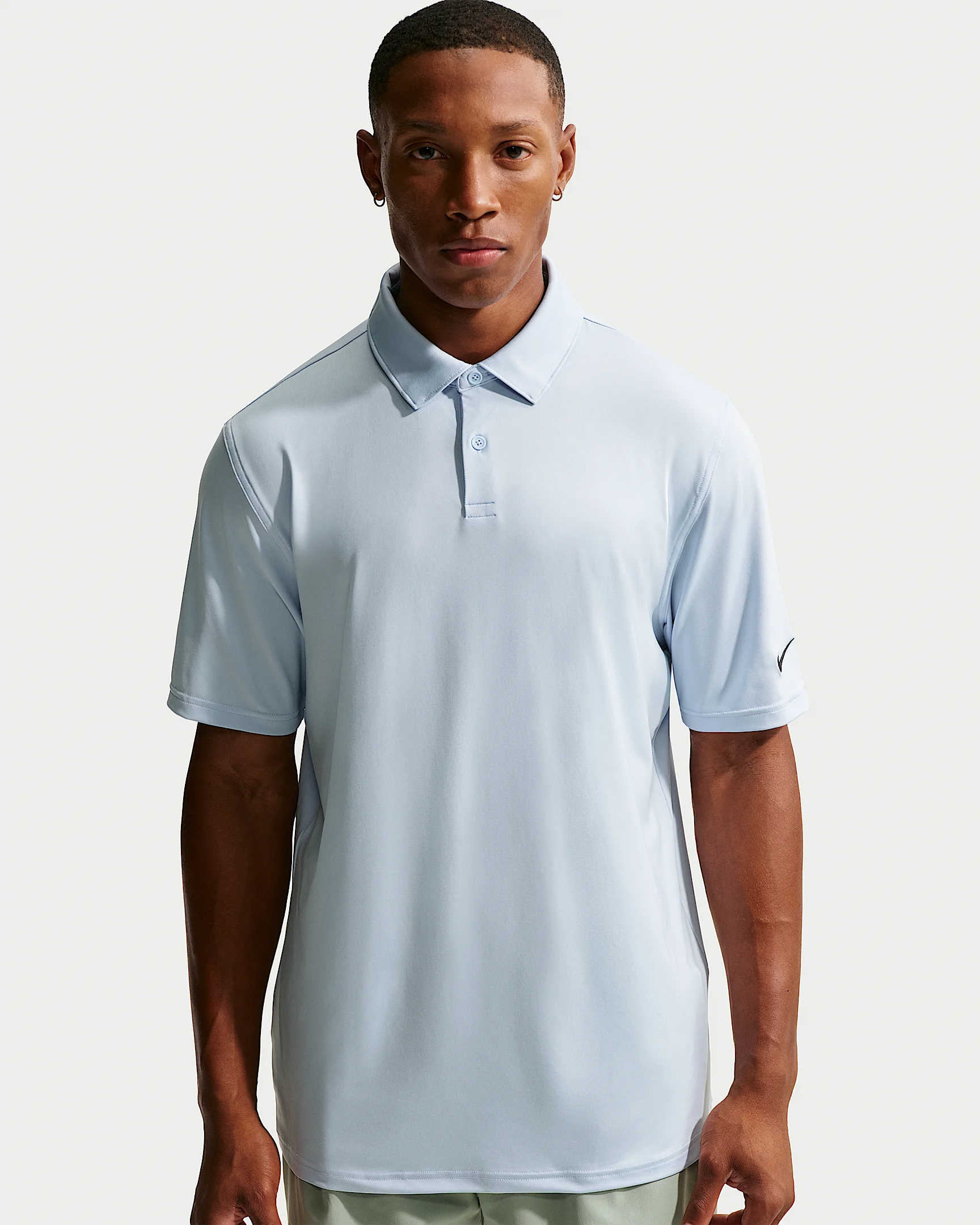 Lightweight and breathable, this sweat-wicking polo helps keep you dry on and off the course. Some stretch in the fabric allows you to move with ease through your biggest rounds of the year. Benefits - Smooth four-way stretchy fabric allows you to move through your swing without restriction. - Fabric has a subtle sheen and drape for a polished look on and off the course. - Nike Dri-FIT technology moves sweat away from your skin for quicker evaporation, helping you stay dry and comfortable. Product Details - 90% polyester/10% spandex - Embroidered Swoosh logo - 2-button placket - Straight bottom hem - Machine wash - Imported - Shown: Hydrogen Blue/Black - Style: IQ6689-407 SIZE & FIT Model is wearing size M and is 5′11″179cm Standard fit: easy and traditional