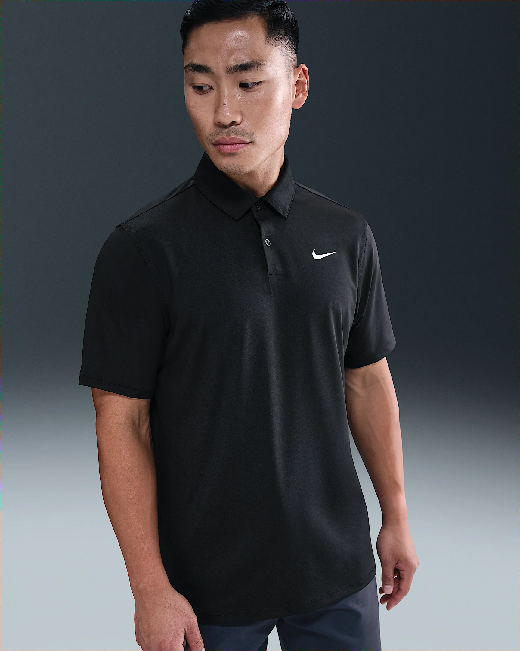 Just like when your swing's working, a good shirt is nothing to mess with. Lightweight and breathable, this sweat-wicking polo helps you stay comfortable through the highs and lows of your rounds. Benefits - Nike Dri-FIT technology moves sweat away from your skin for quicker evaporation, helping you stay dry and comfortable. - Some stretch in the fabric allows you to rotate and swing through the ball with ease. Product Details - 90% polyester/10% spandex - 2-button placket - Embroidered Swoosh logo - This product provides UVA and UVB protection from the sun only in the areas covered by the garment. To protect exposed areas, the use of good quality sunscreen is recommended. - Machine wash - Imported - Shown: Black/White - Style: IB0273-010 SIZE & FIT Model is wearing size M and is 6'0"183cm Standard fit: easy and traditional