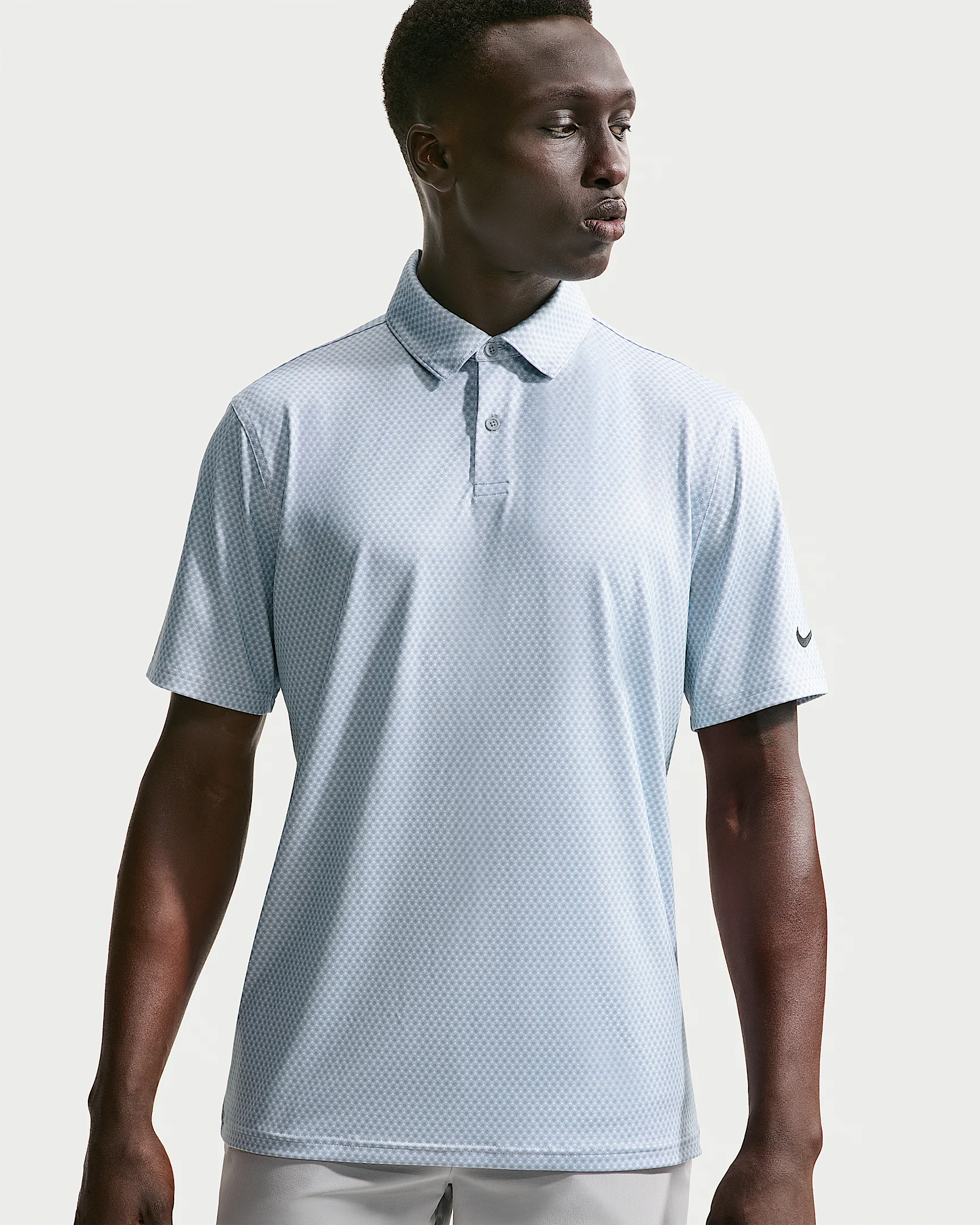 Lightweight and breathable, this sweat-wicking polo helps keep you dry on and off the course. Some stretch in the fabric allows you to move with ease through your biggest rounds of the year. Benefits - Smooth four-way stretchy fabric allows you to move through your swing without restriction. - Fabric has a subtle sheen and drape for a polished look on and off the course. - Nike Dri-FIT technology moves sweat away from your skin for quicker evaporation, helping you stay dry and comfortable. Product Details - 90% polyester/10% spandex - Stretchy knit fabric - Embroidered Swoosh logo - 2-button placket - Straight bottom hem - Machine wash - Imported - Shown: Wolf Grey/Wolf Grey/Black - Style: IB0246-012 SIZE & FIT Model is wearing size M and is 6′0″183cm Standard fit: easy and traditional