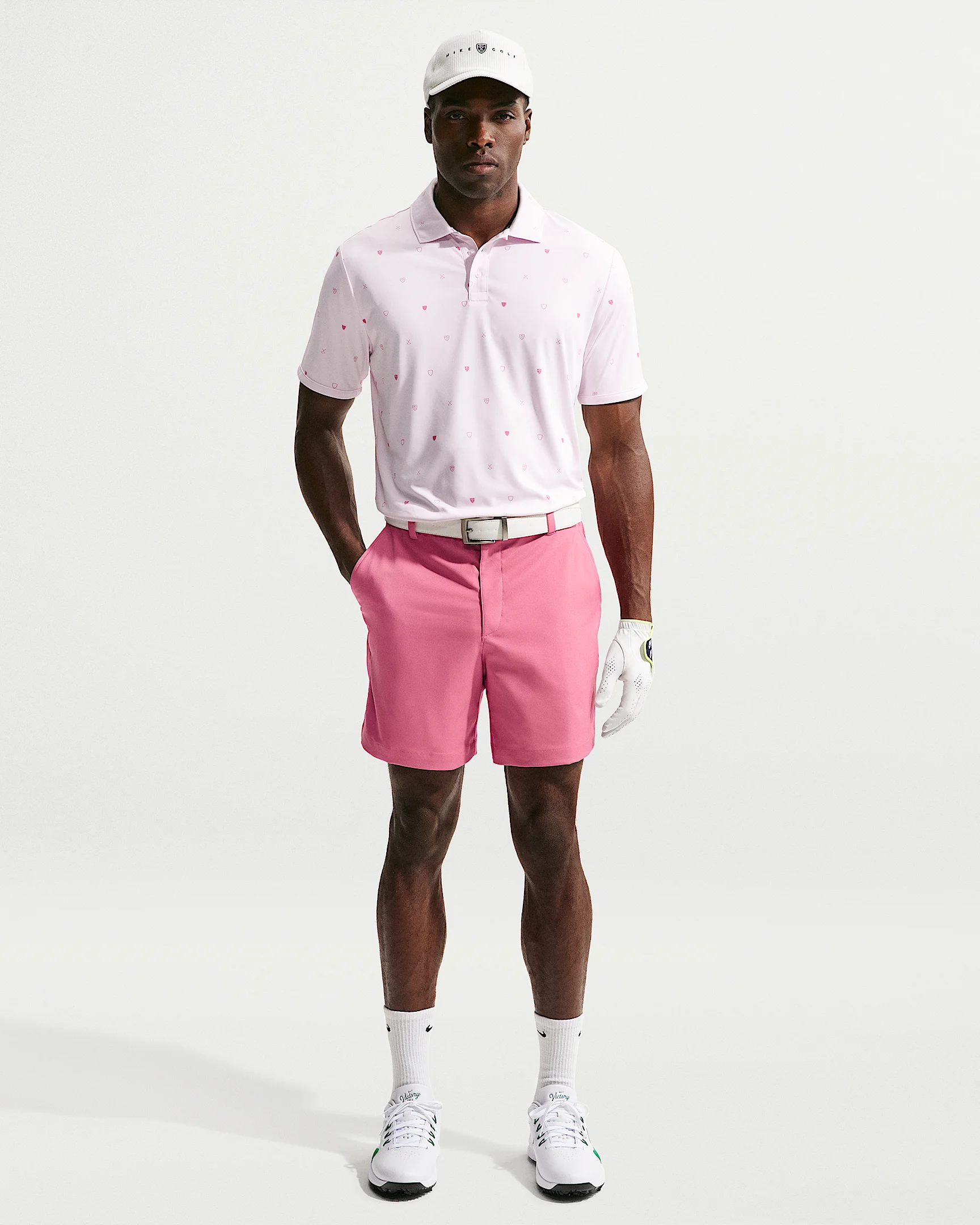 Cut to land above your knees, these lightweight shorts use a sweat-wicking, stretch fabric to help you stay cool and comfortable whether you're walking the course or riding. The stretch waistband is lined with gripper tape for a snug fit that helps keep tucked shirts stay put while deep pockets leave plenty of space for all the birdies you find out there. Benefits - Four-way stretch fabric allows you to move without restriction. - Nike Dri-FIT technology moves sweat away from your skin for quicker evaporation, helping you stay dry and comfortable. - Deep pockets are designed to hold yardage books, phones and keep tees and ball markers in place—even when you're riding. - Woven pocket lining helps prevent tees, ball markers and pencils from getting caught. Product Details - Above the knee length - Woven fabric - Mesh-lined elastic waistband - Fly zipper with button - Body: 100% polyester. Pockets: 80% polyester/20% cotton. - Machine wash - Imported - Shown: Peony/Wolf Grey/Peony - Style: IB0685-641 SIZE & FIT Model is wearing size M and is 6′4″192cm Standard fit: easy and traditional