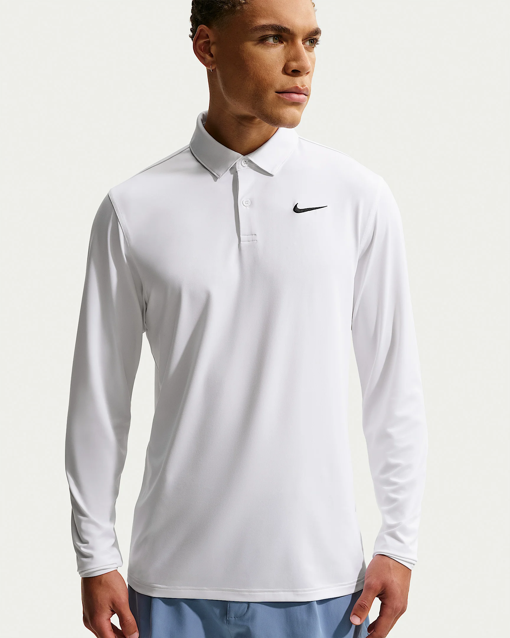 Add warmth to your bag without sacrificing mobility. This long-sleeve uses a stretchy, sweat-wicking fabric that helps keep you warm without overheating while you play in cooler conditions. Benefits - Smooth four-way stretch, performance fabric allows you to move through your swing without restriction. - Fabric has a subtle sheen and drape for a polished look on and off the course. - Nike Dri-FIT technology moves sweat away from your skin for quicker evaporation, helping you stay dry and comfortable. Product Details - 90% polyester/10% spandex - Stretchy knit fabric - Embroidered Swoosh logo - 2-button placket - Machine wash - Imported - Shown: White/Black - Style: IB0239-100 SIZE & FIT Model is wearing size M and is 6′3″191cm Standard fit: easy and traditional