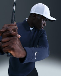 Cozy up to the pin in this 1/2-zip top. A go-to layer for cooler rounds, it uses a brushed Therma-FIT fabric to help you stay warm without weighing you down. Some stretch in the fabric allows you to make a full turn in your swing and move through the ball with ease. Benefits - Nike Therma-FIT technology helps manage your body’s natural heat to help keep you warm in cold-weather conditions. - Blade collar and 1/2-zip design make it easy to pair this top with your favorite polos. Product Details - 94% polyester/6% spandex - Brushed thermal knit fabric - 1/2-zip design - Embroidered Nike Golf shield logo - Machine wash - Imported - Shown: College Navy/White - Style: IB0307-419 SIZE & FIT Model is wearing size M and is 6′1″184cm Standard fit: easy and traditional