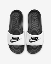 From the beach to the bleachers, the Victori One is a must-have slide for everyday activities. Subtle yet substantial updates like a wider strap and softer foam make lounging easy. Go ahead—enjoy endless comfort for your feet. Benefits - Soft foam adds responsiveness and cushioning. - Textured pattern on the contoured footbed adds grip to help your feet stay in place. - Rolled edges on the padded strap creates a smooth, comfortable feel. - Wider strap provides additional space to help accommodate more sizes. - Outsole pattern is designed for multi-surface traction. Product Details - Shown: Black/White/Black - Style: CN9675-005