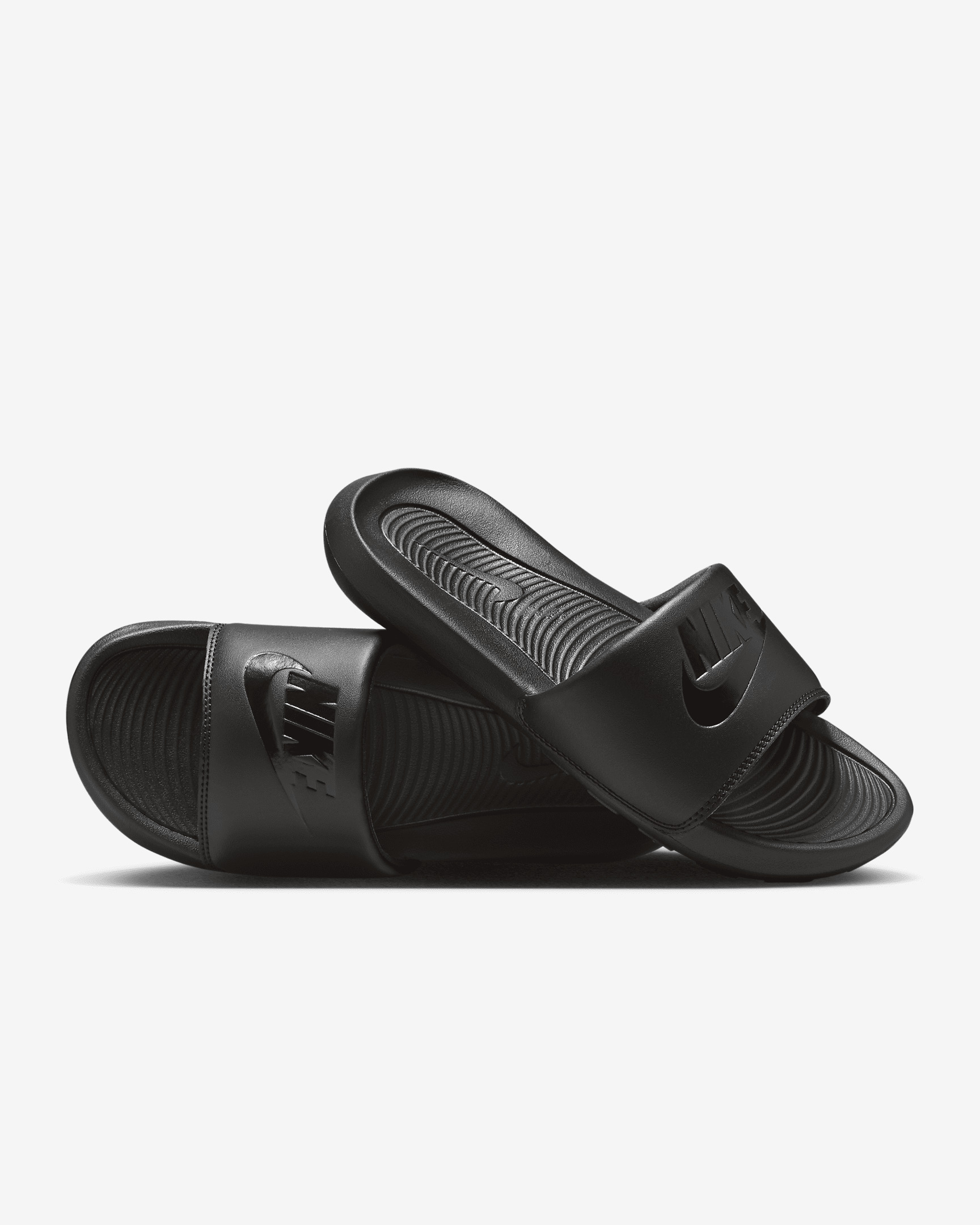 From the beach to gardening to sitting on the couch, the Nike Victori One perfects a classic design. Delivering lightweight comfort that’s easy to wear, it features new softer, more responsive foam. The contoured grip pattern helps cradle and hold your foot in place. Benefits - The new, softer foam and mechanical cushioning adds unbelievable responsiveness and comfort that lasts. - The contoured footbed cradles and supports your foot while its grip pattern helps keep your foot in place. - The rolled top edge of the strap adds to the comfort while its thick padding feels soft. - The new strap design adds additional space, accommodating more foot sizes. - The outsole features a new pattern for added traction. Product Details - Bold "NIKE" and Swoosh designs on the strap lets you rep your brand - Shown: Black/Black/Black - Style: CN9677-004