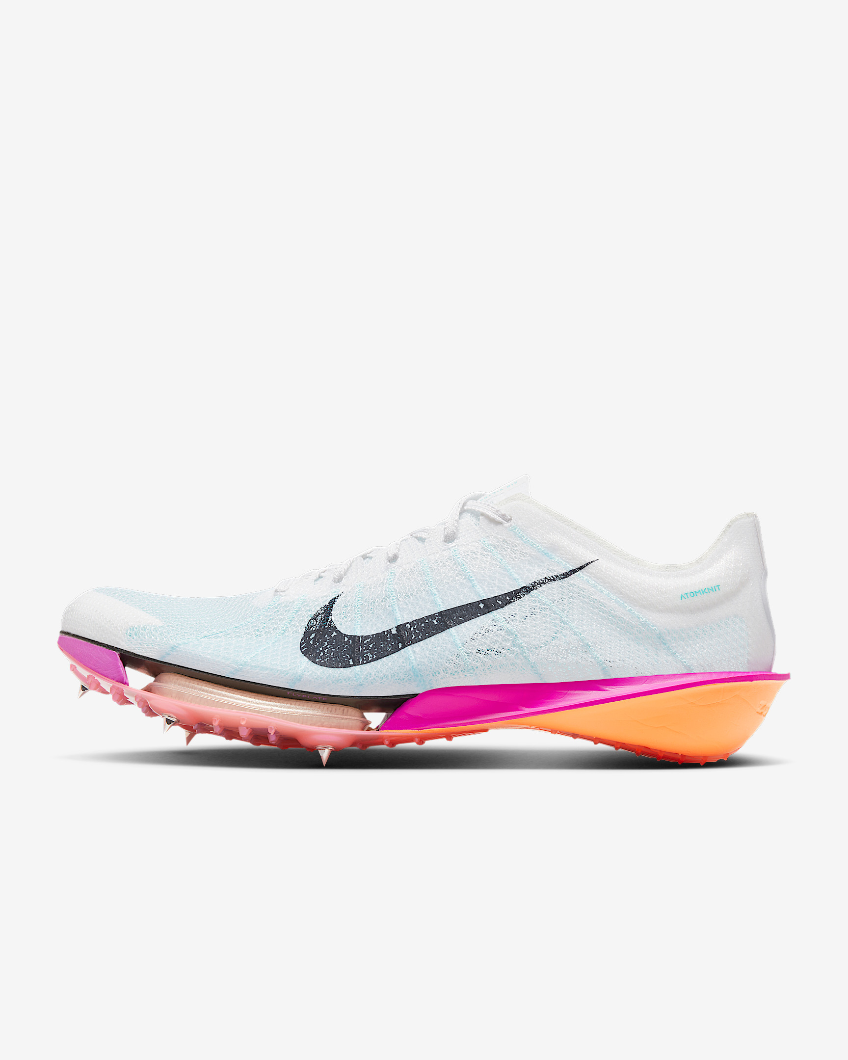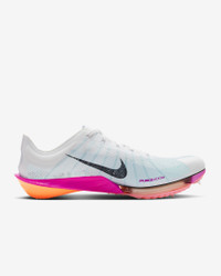 The Victory 2 is tested and validated by the best middle-distance runners sprinting the planet. It sports every speed component you need to smash records, from a carbon fiber Flyplate to Air Zoom unit to a lightweight, responsive ZoomX midsole. Atomknit on the upper and midfoot containment cables combine with a supportive base that delivers improved stability and control of the shoe, especially around the turns. Product Details - Shown: White/Bright Crimson/Fire Pink/Obsidian - Style: FD8411-101 SIZE & FIT Fits small; we recommend ordering a half size up