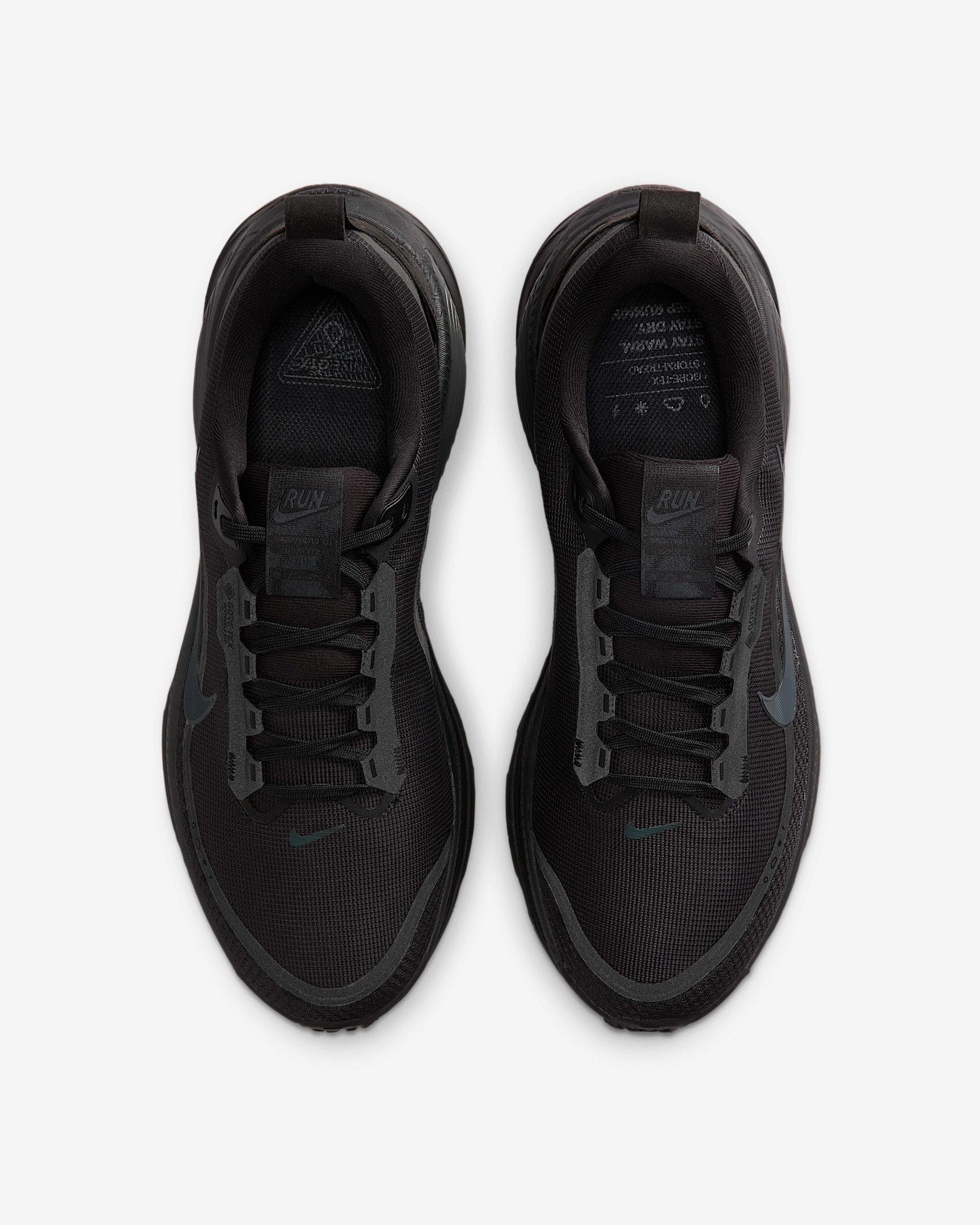 Maximum cushioning in the winterized Vomero 18 delivers a comfortable ride for rainy road runs. Experience optimal comfort with lightweight ZoomX foam stacked on top of responsive ReactX foam in the midsole. Plus, a waterproof GORE-TEX upper and reflective details throughout help you comfortably take on the elements. More Benefits - Waterproof GORE-TEX liner and mesh upper - ZoomX foam stacked on top of ReactX foam - Higher stack height compared to Vomero 17 - 13% more responsive than previous React technology Product Details - Reflective details on upper - Not intended for use as Personal Protective Equipment (PPE) - Weight: Approx. 329g/9 oz (Men's US 10) - Heel-to-toe drop: 10mm - Shown: Black/Anthracite - Style: HQ7001-001