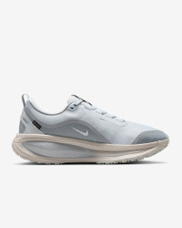 Maximum cushioning in the winterized Vomero 18 delivers a comfortable ride for rainy road runs. Experience optimal comfort with lightweight ZoomX foam stacked on top of responsive ReactX foam in the midsole. Plus, a waterproof GORE-TEX upper and reflective details throughout help you comfortably take on the elements. More Benefits - Waterproof GORE-TEX liner and mesh upper - ZoomX foam stacked on top of ReactX foam - Higher stack height compared to Vomero 17 - 13% more responsive than previous React technology Product Details - Reflective details on upper - Not intended for use as Personal Protective Equipment (PPE) - Weight: Approx. 329g/9 oz (Men's US 10) - Heel-to-toe drop: 10mm - Shown: Pure Platinum/Light Pumice/Barely Green/Metallic Silver - Style: HQ7001-003