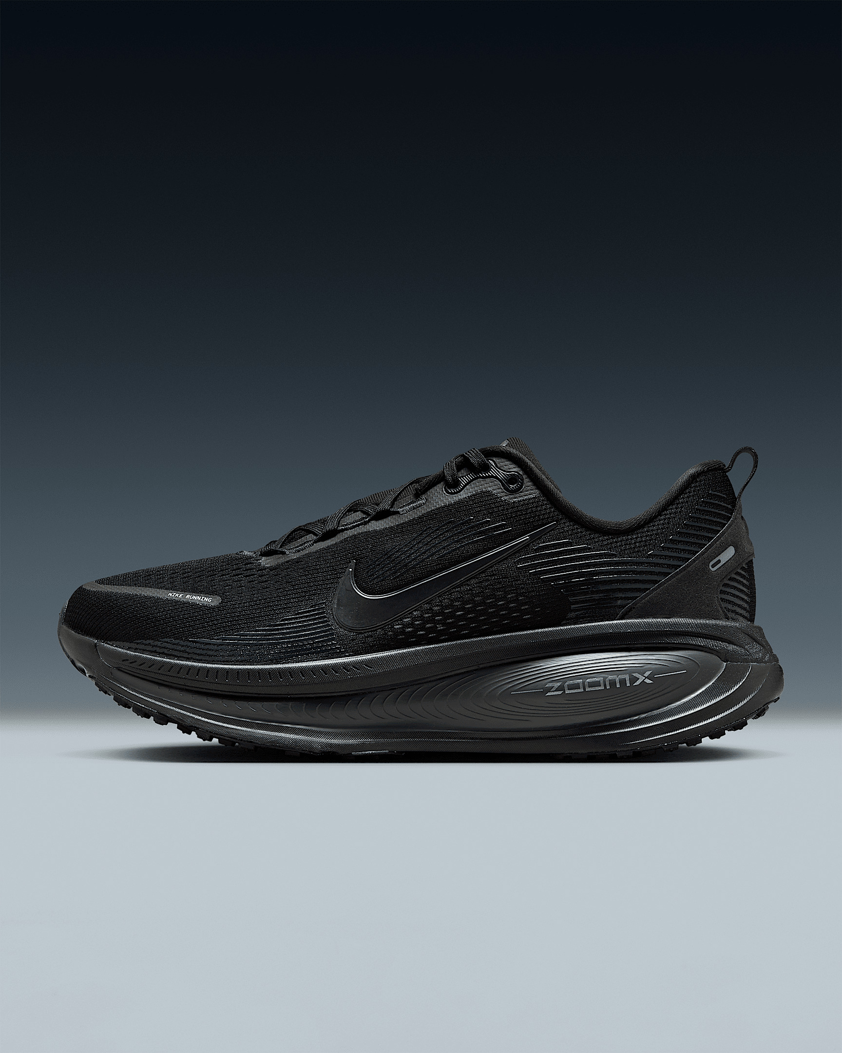 Maximum cushioning in the Vomero provides a comfortable ride for everyday runs. Our softest, most cushioned ride has lightweight ZoomX foam stacked on top of responsive ReactX foam in the midsole. Plus, a redesigned traction pattern offers a smooth heel-to-toe transition. Product Details - Weight: Approx. 325g/11.5oz (Men's US 10) - Heel-to-toe drop: 10mm - MR-10 Last - Our best, most consistent fit - Reflective details - Not intended for use as Personal Protective Equipment (PPE) - Shown: Black/Dark Smoke Grey/Light Smoke Grey/Black - Style: HM6803-005