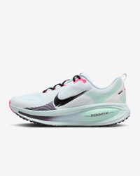 Maximum cushioning in the Vomero provides a comfortable ride for everyday runs. Our softest, most cushioned ride has lightweight ZoomX foam stacked on top of responsive ReactX foam in the midsole. Plus, a redesigned traction pattern offers a smooth heel-to-toe transition. More Benefits - ZoomX foam stacked on top of ReactX foam - Higher stack height compared to Vomero 17 - Plush foam collar - Increased rocker Product Details - Weight: Approx. 325g/11.5oz (Men's US 10) - Heel-to-toe drop: 10mm - MR-10 Last - Our best, most consistent fit - Not intended for use as Personal Protective Equipment (PPE) - Shown: White/Glacier Blue/Hyper Pink/Black - Style: IM6676-104