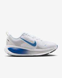 Maximum cushioning in the Vomero provides a comfortable ride for everyday runs. Our softest, most cushioned ride has lightweight ZoomX foam stacked on top of responsive ReactX foam in the midsole. Plus, a redesigned traction pattern offers a smooth heel-to-toe transition. Product Details - Weight: Approx. 263g/9.3oz (Women’s US 8) - Heel-to-toe drop: 10mm - MR-10 Last - Our best, most consistent fit - Not intended for use as Personal Protective Equipment (PPE) - Shown: White/Photon Dust/Metallic Silver/Game Royal - Style: IB4032-101