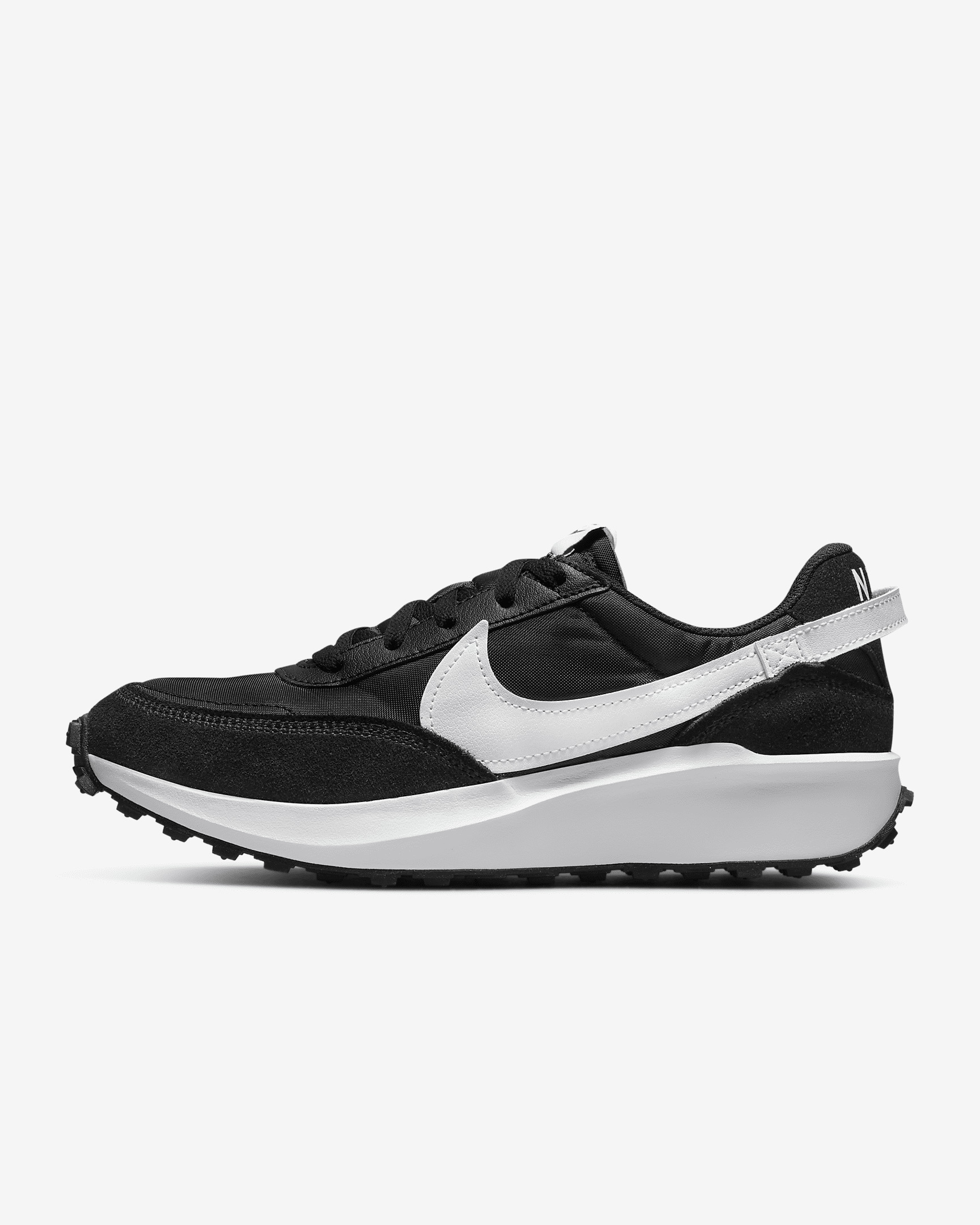 Retro gets modernized with these sleek sneaks inspired by the Nike Daybreak. Era-echoing suede and nylon are paired in complementary colors, and the updated wedge midsole gives you an extra lift. Style, comfort, iconic Waffle outsole—this is a perfect new addition to your daily rotation. Benefits - Swoosh wraps around your heel to form a pull tab, adding aesthetic appeal to on-and-off functionality. - Lifted foam midsoles give you an elevated look and all-day comfort. - Soft suede overlays nod to vintage materials while textile underlays add durability. - Rubber Waffle outsole adds durable traction and heritage style. Product Details - Padded collar - Exposed foam tongue - Traditional lacing - Perforations on heel - Shown: Black/Orange/Clear/White - Style: DH9523-002 SIZE & FIT Fits small; we recommend ordering a half size up