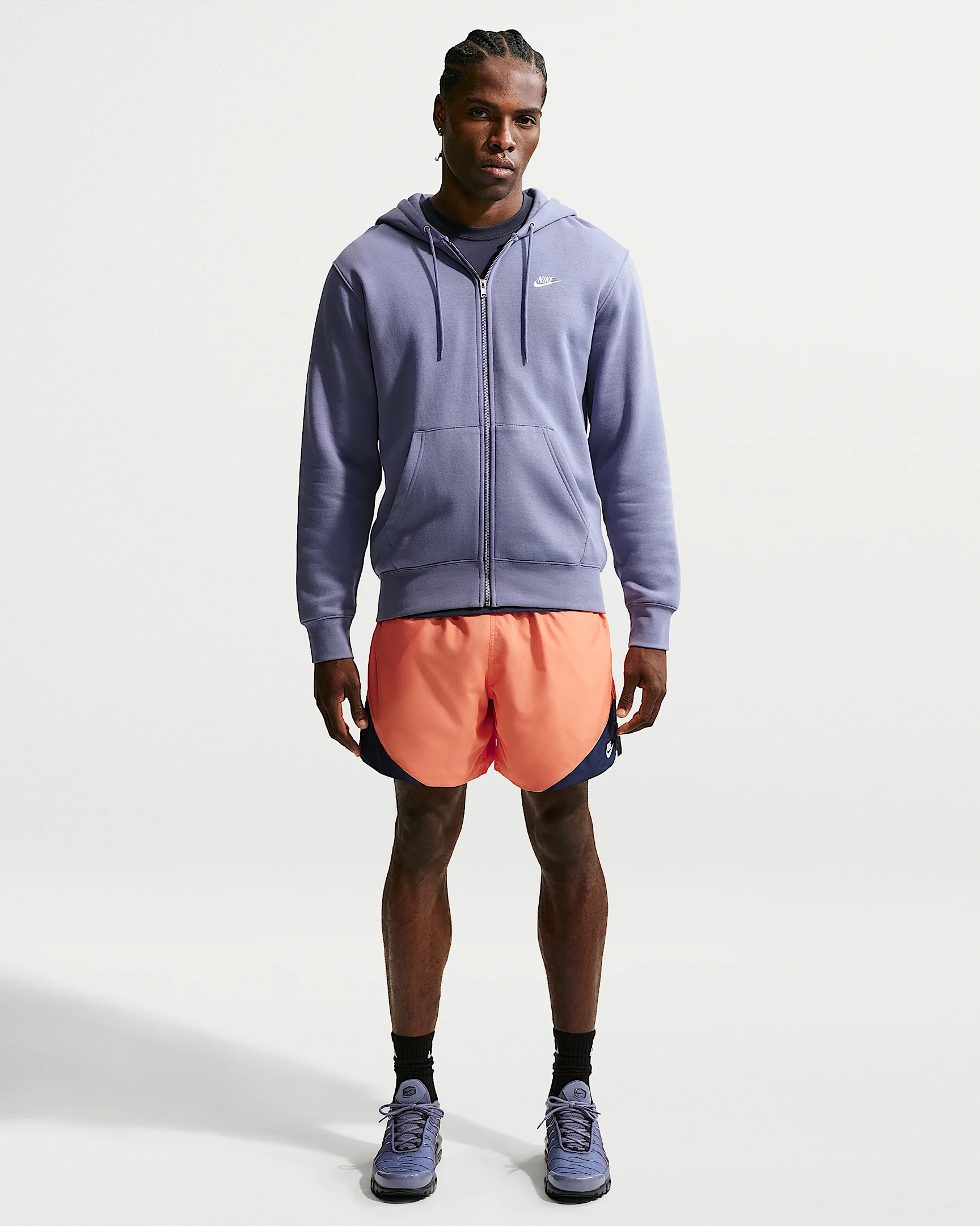 Heritage style for everyday wear. These Windrunner shorts are crafted with crisp, woven taffeta fabric. They have UV protection to help provide coverage from the sun and mesh lining for breathable comfort. Their mid-thigh design is paired with a roomy fit. Product Details - Embroidered logo - Hand pockets - Zippered back pocket - Elastic waistband with drawcord - Body: 100% polyester. Mesh: 100% polyester. - Machine wash - Imported - This product provides UVA and UVB protection from the sun only in the areas covered by the garment. To protect exposed areas, the use of good quality sunscreen is recommended. - Shown: Orange Frost/Midnight Navy/White - Style: IF3398-835 SIZE & FIT Model is wearing size M and is 6′4″192cm Loose fit: roomy and relaxed