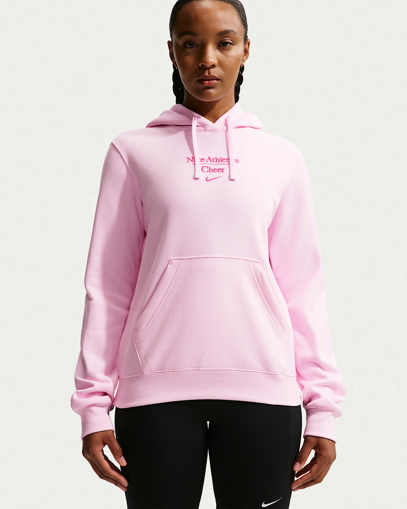 It's your sport. Make sure everybody knows in this cozy fleece Nike Cheer hoodie. Product Details - 82-100% cotton/0-18% polyester - Material percentages may vary. Check label for actual content. - Machine wash - Imported - Shown: Pink Foam/Pink - Style: APS551NACH-PNF