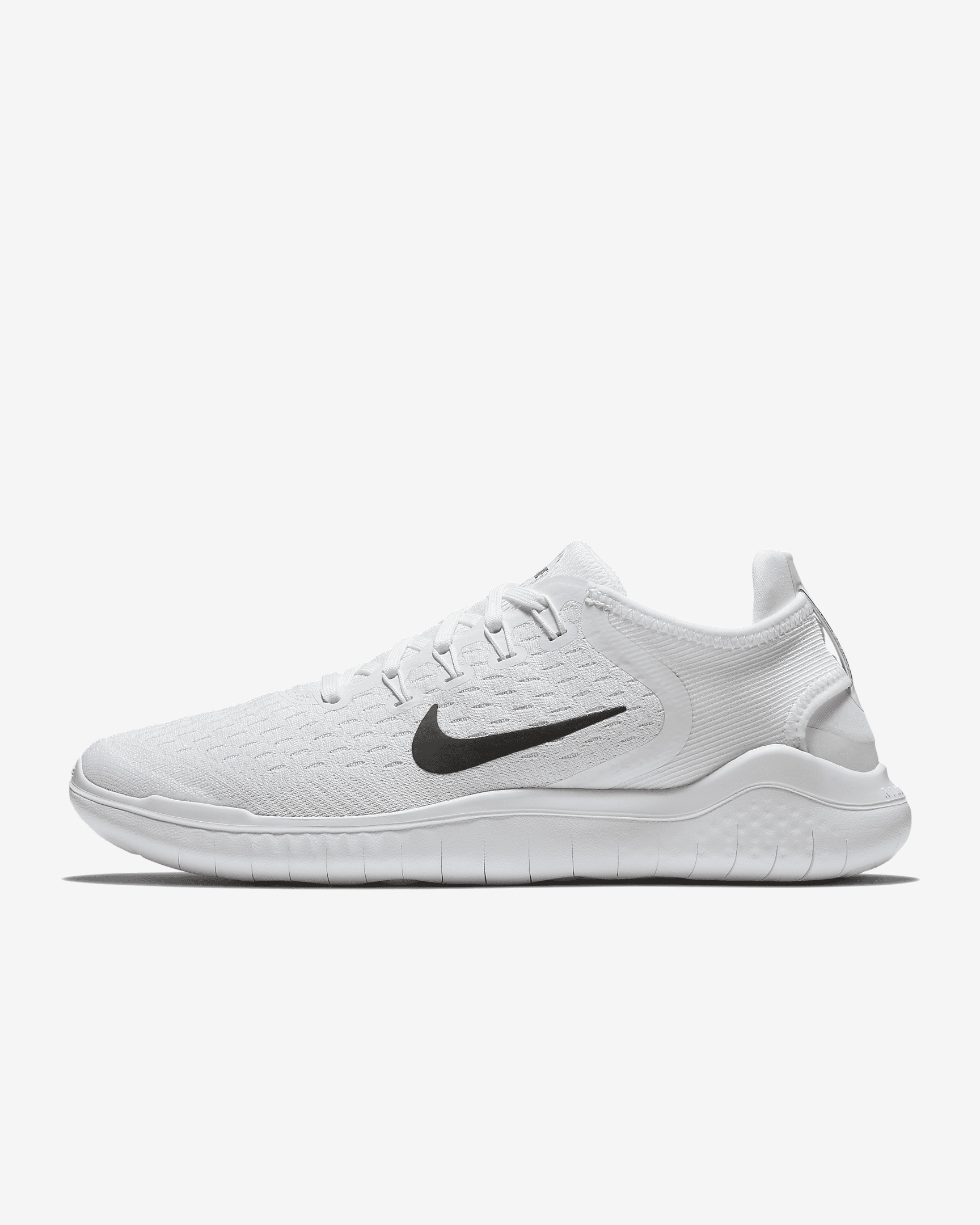STRETCH TO FREE YOUR STRIDE. The Nike Free RN 2018 delivers an even more adaptive fit than before. Stretch material in the upper moves with your foot, while the tri-star outsole pattern adjusts to your every step for a ride that delivers support and flexibility where you need it. Benefits:Circular-knit on the upper is made with spandex for natural movement. Dynamic heel fit system supports from heel to ankle. Tri-star outsole pattern adapts to your step for flexible cushioning. Dynamic Fit technology is achieved through Flywire cables integrated with the laces for an adaptive, supportive fit. Texture has been added under the toe and heel to enhance traction in high-abrasion zones. Product Details:Weight: 7oz/198g (women's size 8). Offset: 8mm (13mm/forefoot, 21mm/heel). Not intended for use as Personal Protective Equipment (PPE). Style: 942837; Color: White/Black; Size: 11; Gender: Female; Age Group: Adult | Nike Free RN 2018 Women's Running Shoes in White, Size: 11 | 942837-100