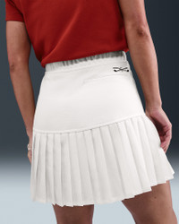 Level up your course outfit. This skirt combines breathable pique fabric with a woven pleated panel for elevated comfort and movement. Benefits - Internal drawcord helps you dial in your perfect fit. - Pocket on back stores your golf essentials. Product Details - Printed Nike Golf logo on back right - Printed Swoosh logo on left hip - Body: 70% cotton/30% polyester. Panels/Back pocket: 100% polyester. - Machine wash - Imported - Shown: Sail/Black - Style: IF8531-133 SIZE & FIT Model is wearing size S and is 5′6″168cm Standard fit: easy and traditional