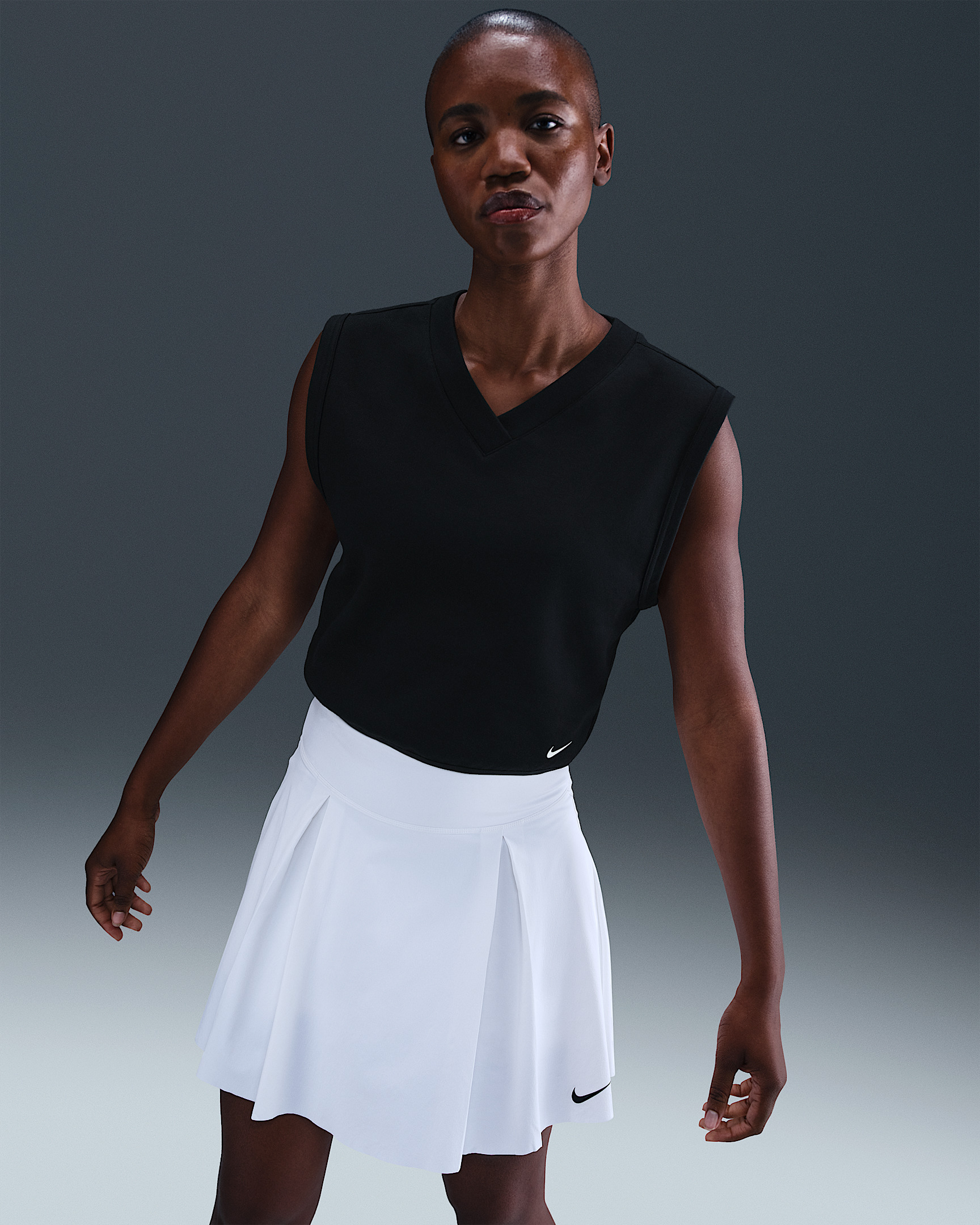 This timeless vest gets a modern update with elastic at the hem and a slightly cropped length. It's crafted with midweight pique fabric for breathable comfort across the course. Benefits - Large armholes give you freedom to power through your swing. - Elastic at hem cinches in the fit. Product Details - Printed Nike Golf logo at back - Printed Swoosh logo at bottom hem - 70% cotton/30% polyester - Machine wash - Imported - Shown: Black/Sail/Sail - Style: IH0939-010 SIZE & FIT Model is wearing size S and is 5′11″180cm Standard fit: easy and traditional