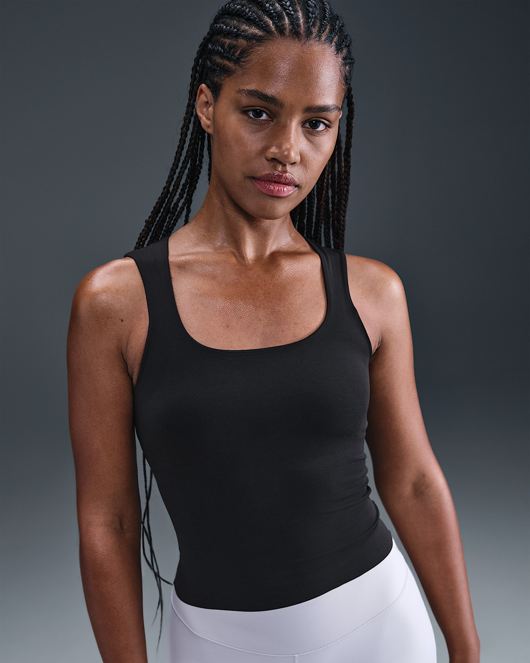 Move with total freedom in this fitted Zenvy tank. It's made with InfinaSoft fabric that stretches effortlessly with you and offers lightweight softness. Plus, Nike Dri-FIT technology moves sweat away from your skin for quicker evaporation, helping you stay dry and comfortable. Product Details - Shelf bra liner - Swoosh logo at center back - Body: 63% nylon/37% spandex. Panels lining: 80% nylon/20% spandex. - Machine wash - Imported - Shown: Black - Style: HV3679-010 SIZE & FIT Model is wearing size S and is 5′8″173cm Tight fit: snug and form-fitting