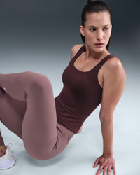 Move with total freedom in this fitted Zenvy tank. It's made with InfinaSoft fabric that stretches effortlessly with you and offers lightweight softness. Plus, Nike Dri-FIT technology moves sweat away from your skin for quicker evaporation, helping you stay dry and comfortable. Product Details - Shelf bra liner - Swoosh logo at center back - Body: 63% nylon/37% spandex. Panels lining: 80% nylon/20% spandex. - Machine wash - Imported - Shown: Burgundy Crush/White - Style: HV3679-652 SIZE & FIT Female model is wearing size S and is 5'10"178cm Tight fit: snug and form-fitting