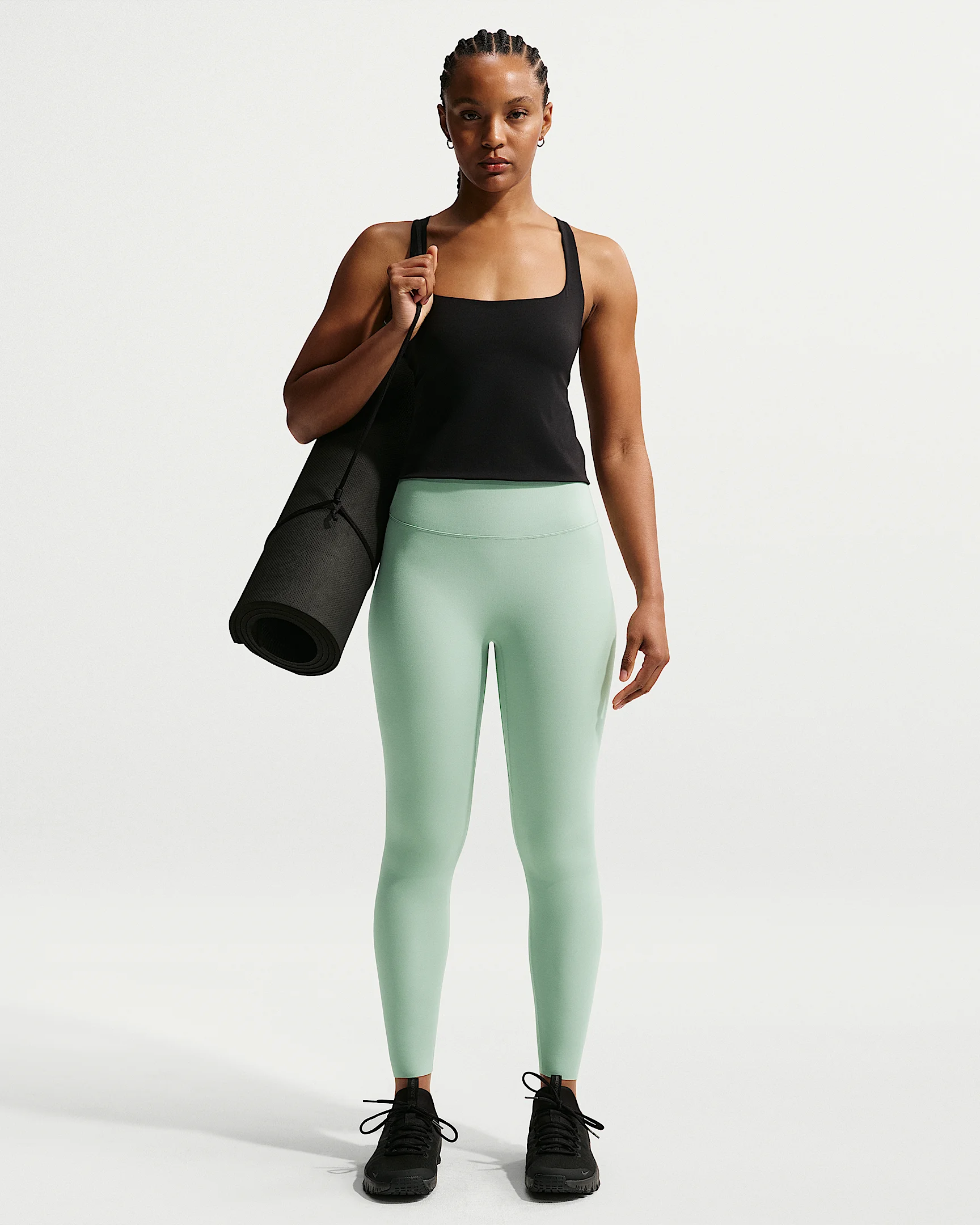 Bend and stretch in total confidence. Still lightweight, our updated InfinaSoft fabric is now ultrasoft with stretch designed to recover its shape wear after wear. Benefits - Nike Dri-FIT technology moves sweat away from your skin for quicker evaporation, helping you stay dry and comfortable. - We raised the waistband slightly for a true high-waisted fit. - No front seam helps keep the fabric from riding up, giving you a smooth fit and seamless look. - Hidden pocket at the back of the waistband fits most phones. Product Details - Raw hem - No front seam - Body: 69% nylon/31% spandex. Panels lining: 72% nylon/28% spandex. - Machine wash - Imported - Shown: Steam/White - Style: II5233-006 SIZE & FIT Model is wearing size S and is 5′7″170cm Tight fit: snug and form-fitting Gentle support: feels ke a soft hug with plenty of freedom 78 length: hits at ankle High-Waisted: sits at or above your natural waist for more coverage