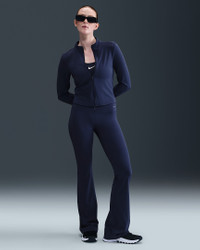 Holding your poses or taking a walk in the park, you can move freely in our unbelievably soft Nike Zenvy flared leggings. Their InfinaSoft fabric is lightweight—but still squat-proof!—with softness that you can feel with every bend, stretch and shift. Fewer pockets give you a streamlined look, but the drop-in pocket at the center back is still big enough to hold your phone. Benefits - Nike Dri-FIT technology moves sweat away from your skin for quicker evaporation, helping you stay dry and comfortable. - Hidden drop-in pocket at back waistband helps keep your essentials close. Product Details - Body: 63% nylon/37% spandex. Gusset lining: 84% nylon/16% spandex. - High-rise waistband - Full-length - Machine wash - Imported - Not intended for use as Personal Protective Equipment (PPE) - Shown: Midnight Navy/Black - Style: FV7921-410 SIZE & FIT Model is wearing size S and is 5′7″170cm Tight fit: snug and form-fitting Fl length: hits below ankle
