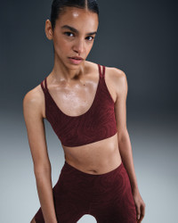 Move with total freedom in this sweat-wicking Zenvy bra. Our InfinaSoft fabric stretches effortlessly with lightweight softness and gives you a gentle hold that's great for low-impact workouts or all-day comfort. Benefits - Nike Dri-FIT technology moves sweat away from your skin for quicker evaporation, helping you stay dry and comfortable. - Opening at back offers added breathability. Product Details - Elastic chest band - Swoosh logo at back - Body: 63% nylon/37% spandex. Lining: 88% polyester/12% spandex. Pad top fabric/Pad back fabric: 100% polyester. Pad: 100% polyurethane. - Machine wash - Imported - Shown: Burgundy Crush/Dark Team Red/Cool Grey - Style: HQ2802-652 SIZE & FIT Model is wearing size S Model height: 5′11″180cm Model bust: 30″76cm Tight fit: snug and form-fitting Light support: feels ke a soft hug with plenty of freedom