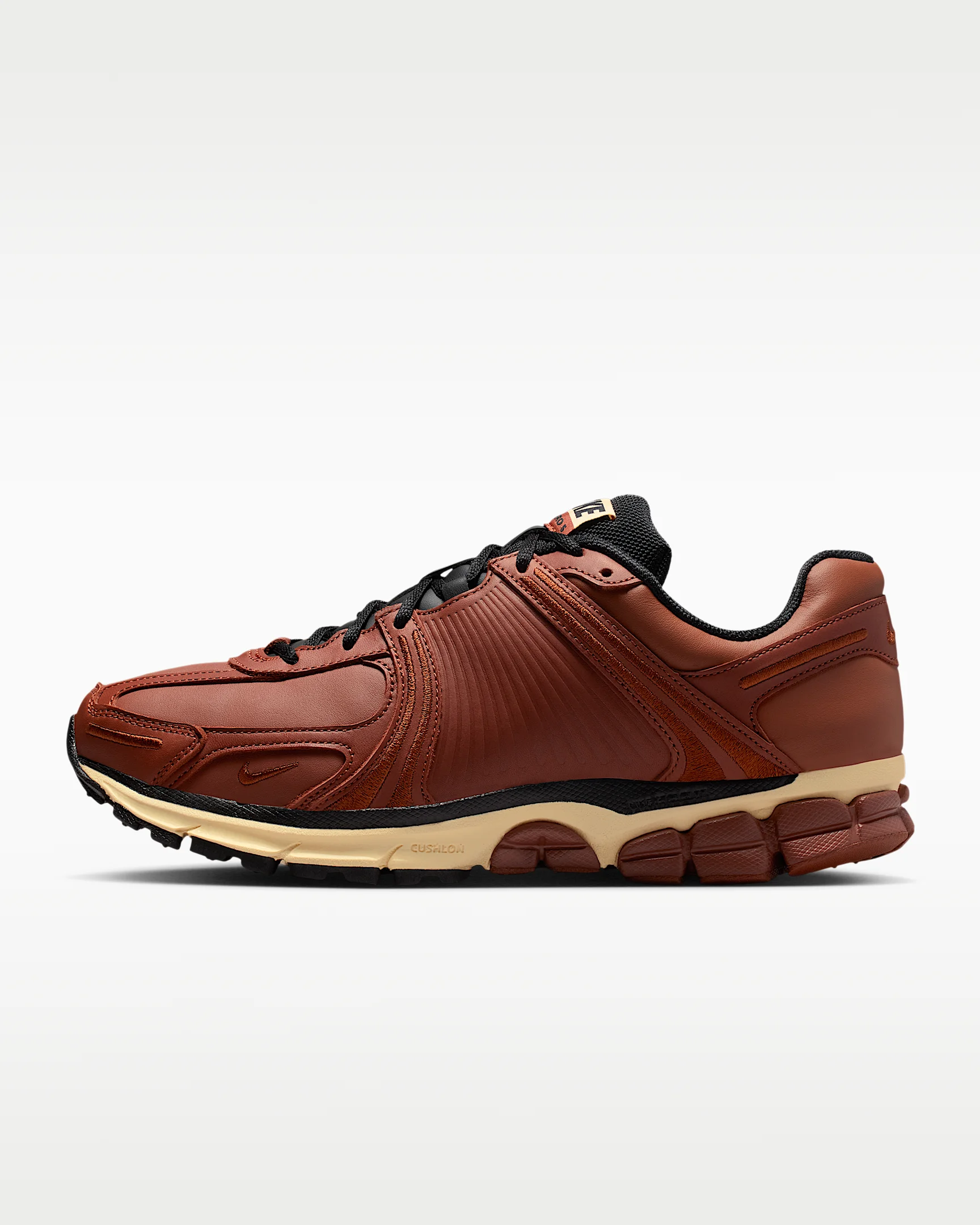 The 2000s running shoe turned everyday icon gets an all-leather makeover. Layers of luscious full-grain leather combine with minimalistic branding for a clean, streamlined look. Benefits - Leather on the upper adds durability. - Zoom Air cushioning helps provide a quick-off-the-ground sensation. - Rubber outsole gives you durable traction. Product Details - Shown: Pony/Dark Russet/Sail - Style: IO4555-200