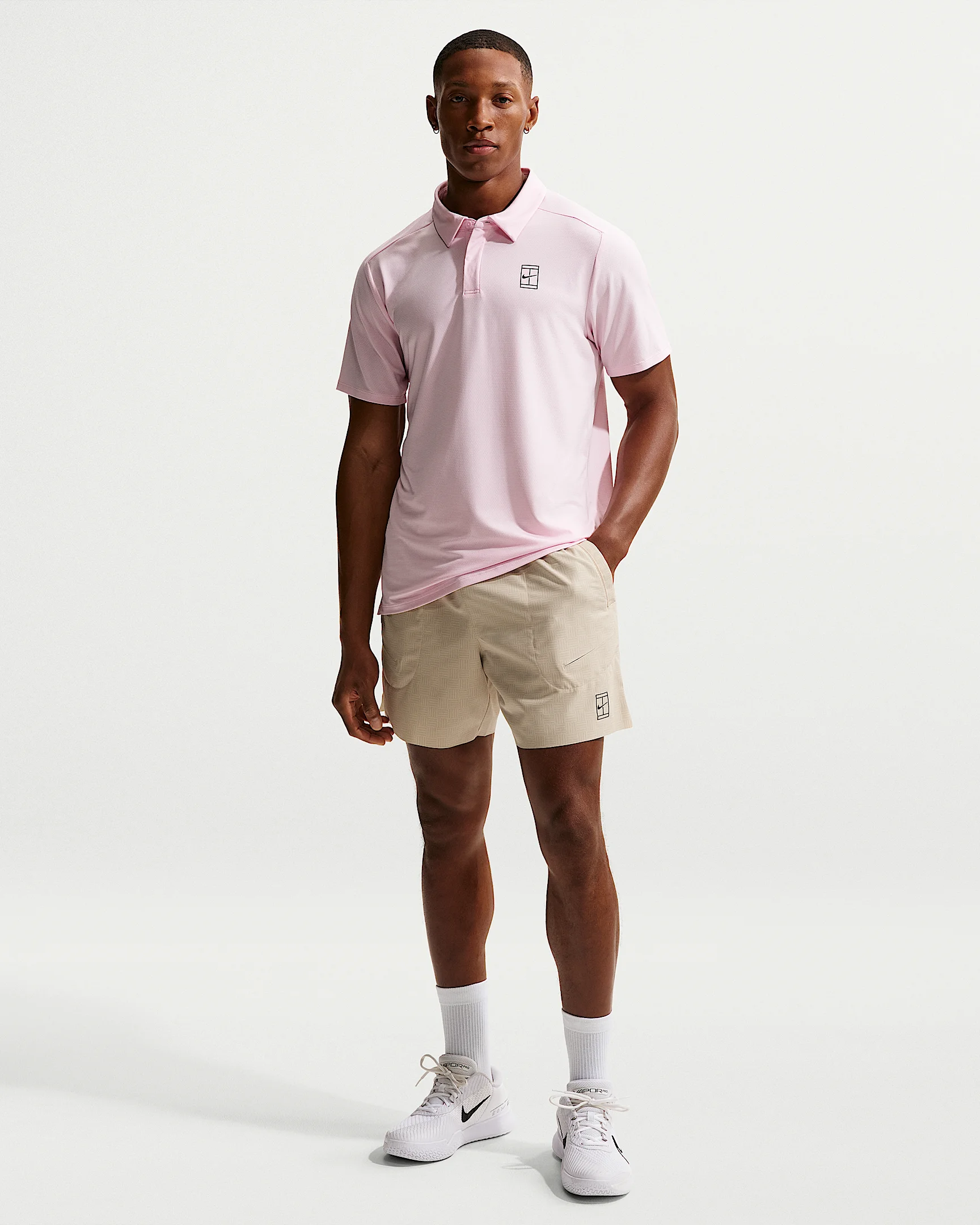 Keep distractions to a minimum with these lightweight, sweat-wicking shorts. Specially design pockets securely hold tennis balls in place while a soft elastic waistband and drawcord provide a secure fit. Benefits - Nike Dri-FIT technology moves sweat away from your skin for quicker evaporation, helping you stay dry and comfortable. - Stretchy woven material feels lightweight and breathable. - Specially designed pockets let you stow tennis balls quickly and securely. - Soft elastic waistband with drawcord provides a secure fit. - Smooth hem finishes help to minimize chafing and distractions. Product Details - 6" inseam - 4-way stretch-woven fabric - Mesh-lined pockets - Elastic waistband with drawcord - Signature ball pocket - Body: 89% polyester/11% spandex. Pocket bag palm side: 100% polyester. - Machine wash - Imported - Shown: Desert Khaki/Black - Style: IB1071-253 SIZE & FIT Model is wearing size M and is 5'11"179cm Standard fit: easy and traditional