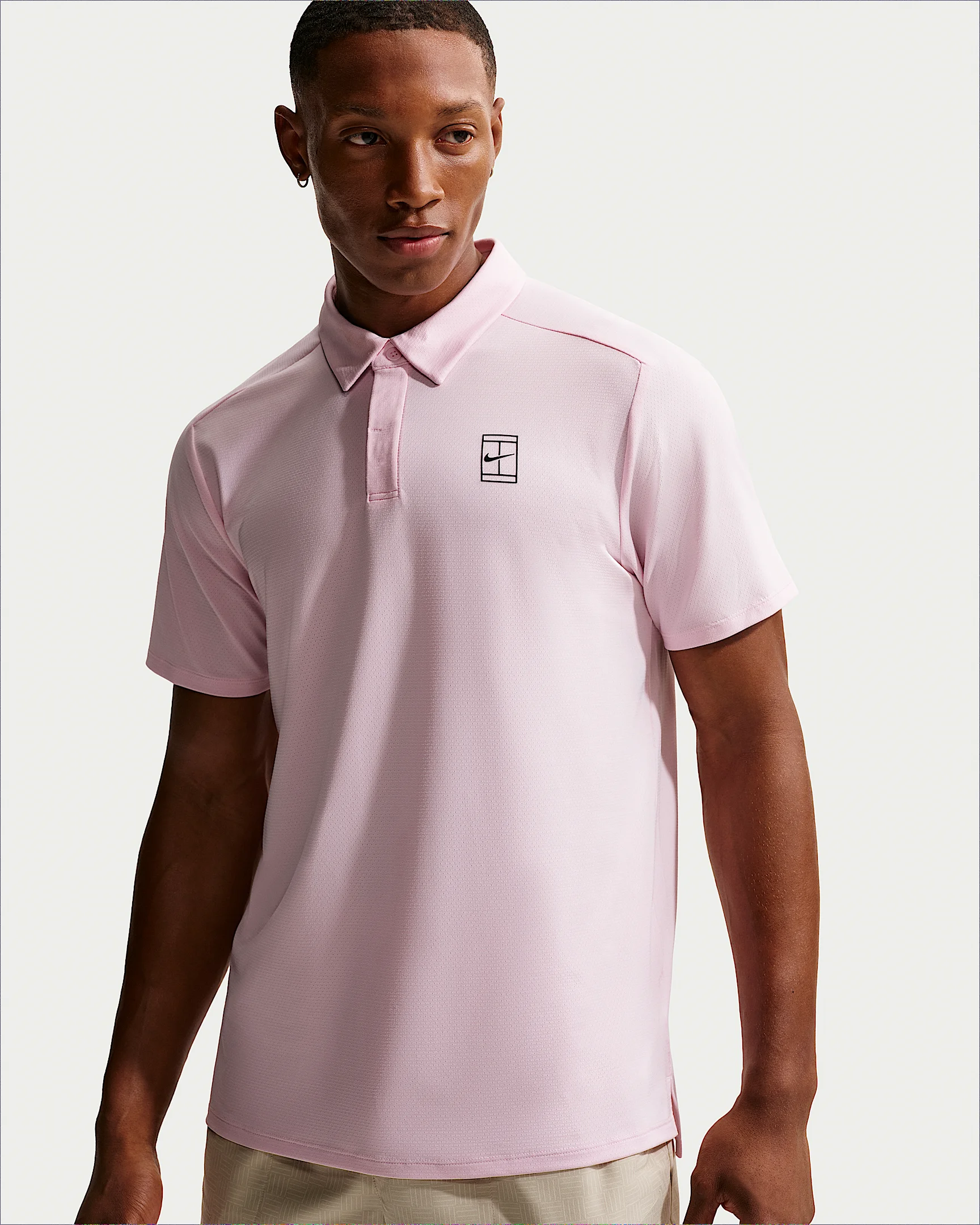 The slim-fit Advantage polo lets you take the court with smooth 4-way stretch material. The redesigned shoulder construction is made for tennis, with a less restrictive feel that won't get in your way. Benefits - Nike Dri-FIT technology moves sweat away from your skin for quicker evaporation, helping you stay dry and comfortable. - Stretchy, breathable fabric feels light and limits cling to your body. - Redesigned shoulder seams give you a smooth, natural feel through your swing with improved mobility in mind. - Button collar construction adds extra structure for a polished look. - Longer back hem provides extra coverage. Product Details - NikeCourt logo on chest - 89% polyester/11% spandex - Machine wash - Imported - Shown: Pink Foam/Black - Style: FZ6907-663 SIZE & FIT Model is wearing size M and is 5'11"179cm Sm fit: sleek and tailored